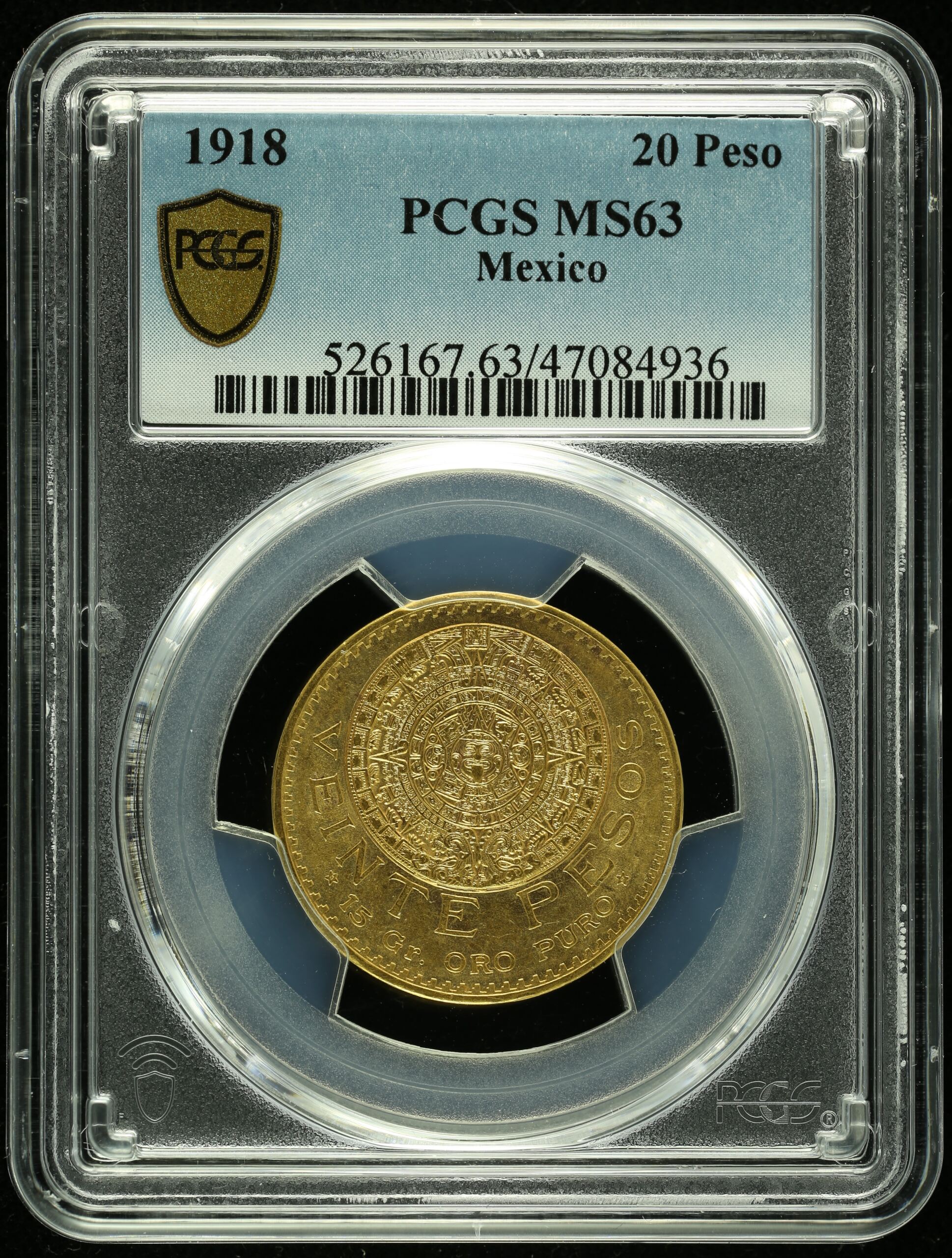 Modern Gold 20 Peso 1918 PCGS MS63 0131472
