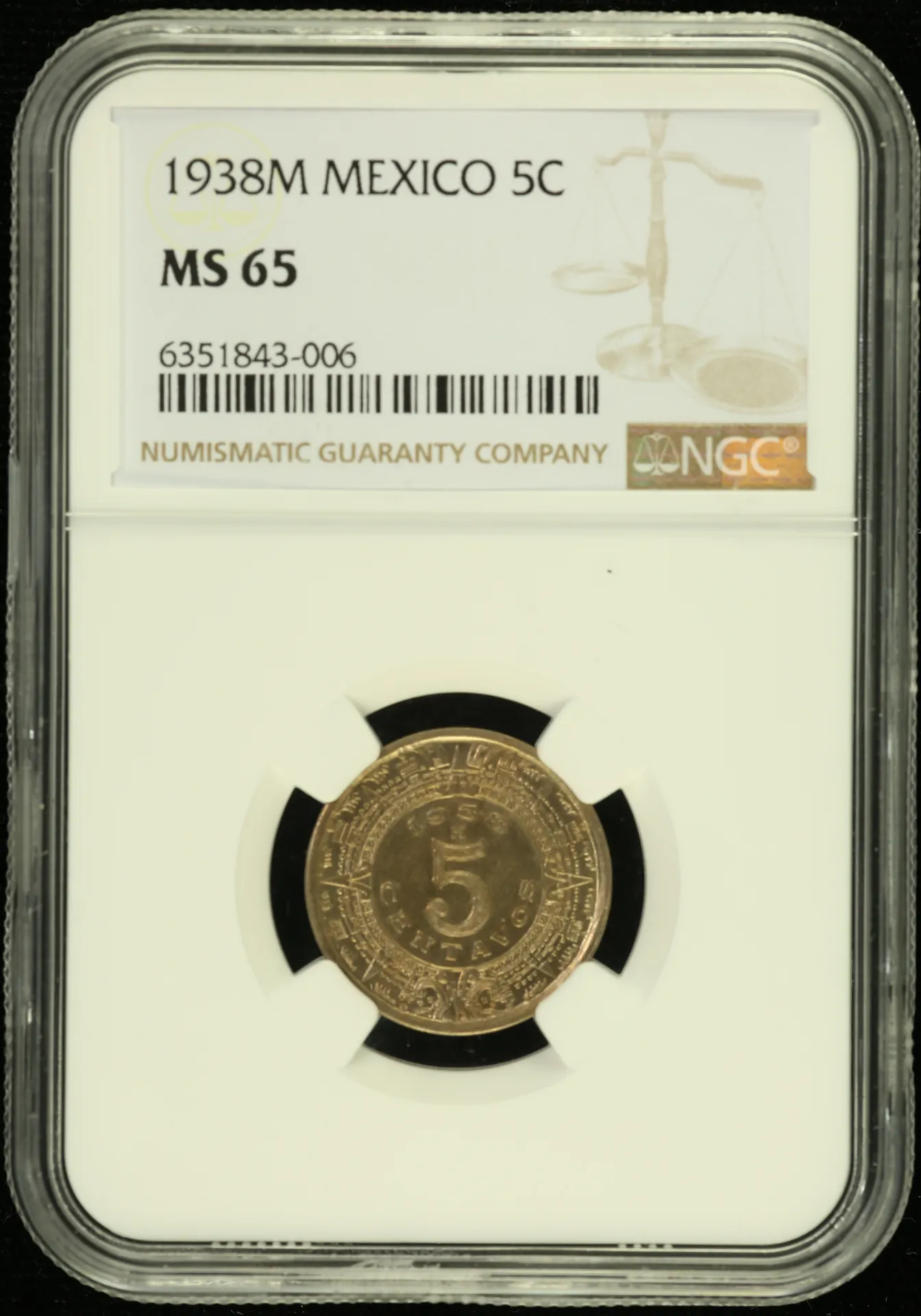 Modern Silver & Minors 5 Centavo 1938 M NGC MS65 0133639