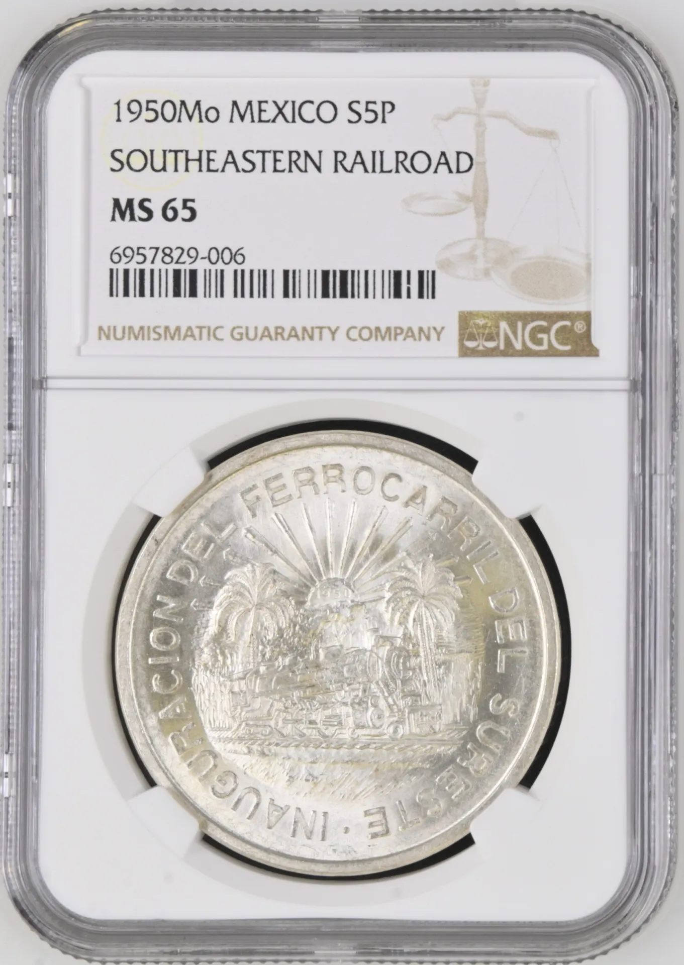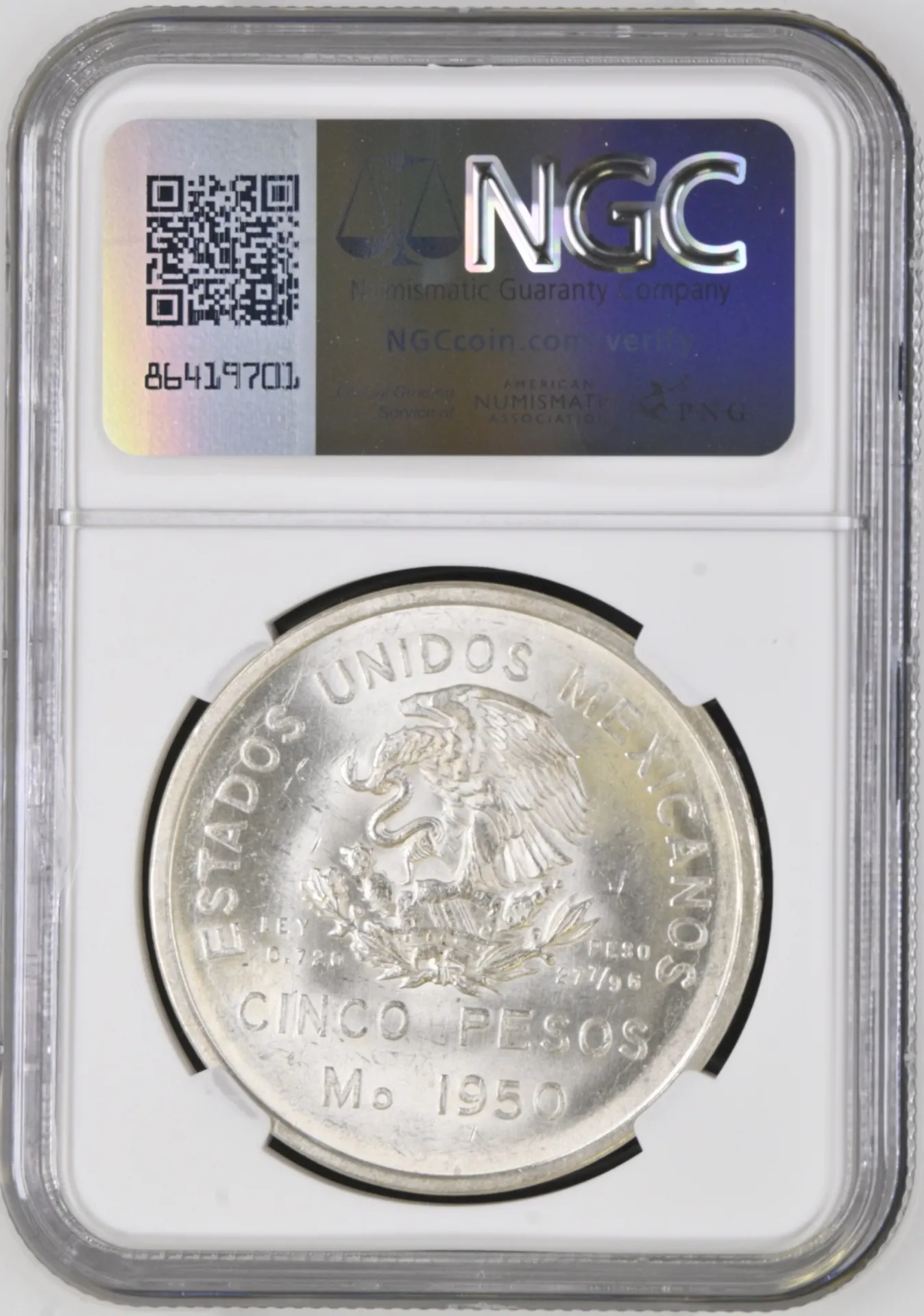 Modern Silver & Minors 5 Peso 1950 Mo NGC MS65 0142183