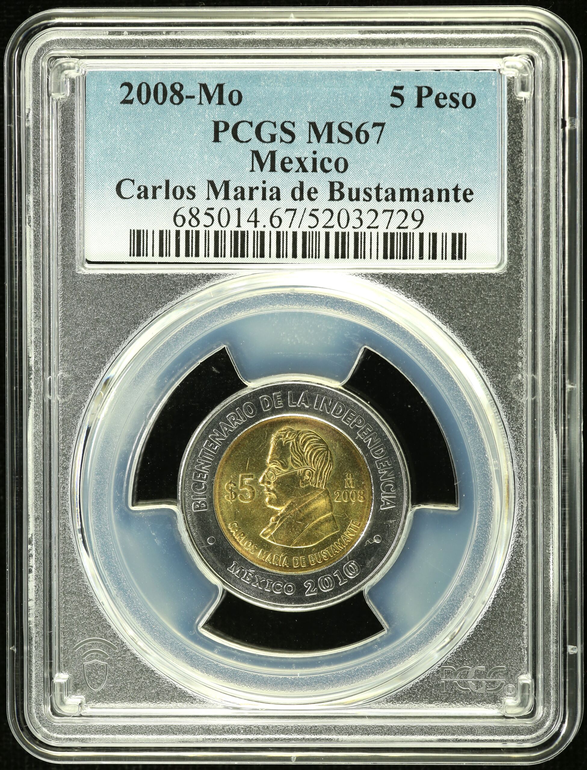 Modern Silver & Minors 5 Peso 2008 Mo Carlos Maria de Bustamante PCGS MS67 0154914