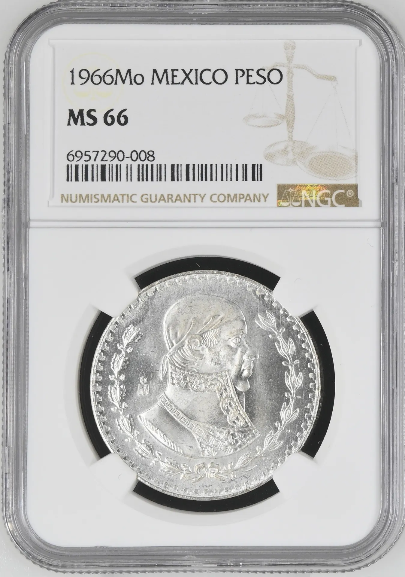 Modern Silver & Minors Peso 1966 Mo NGC MS66 0142075