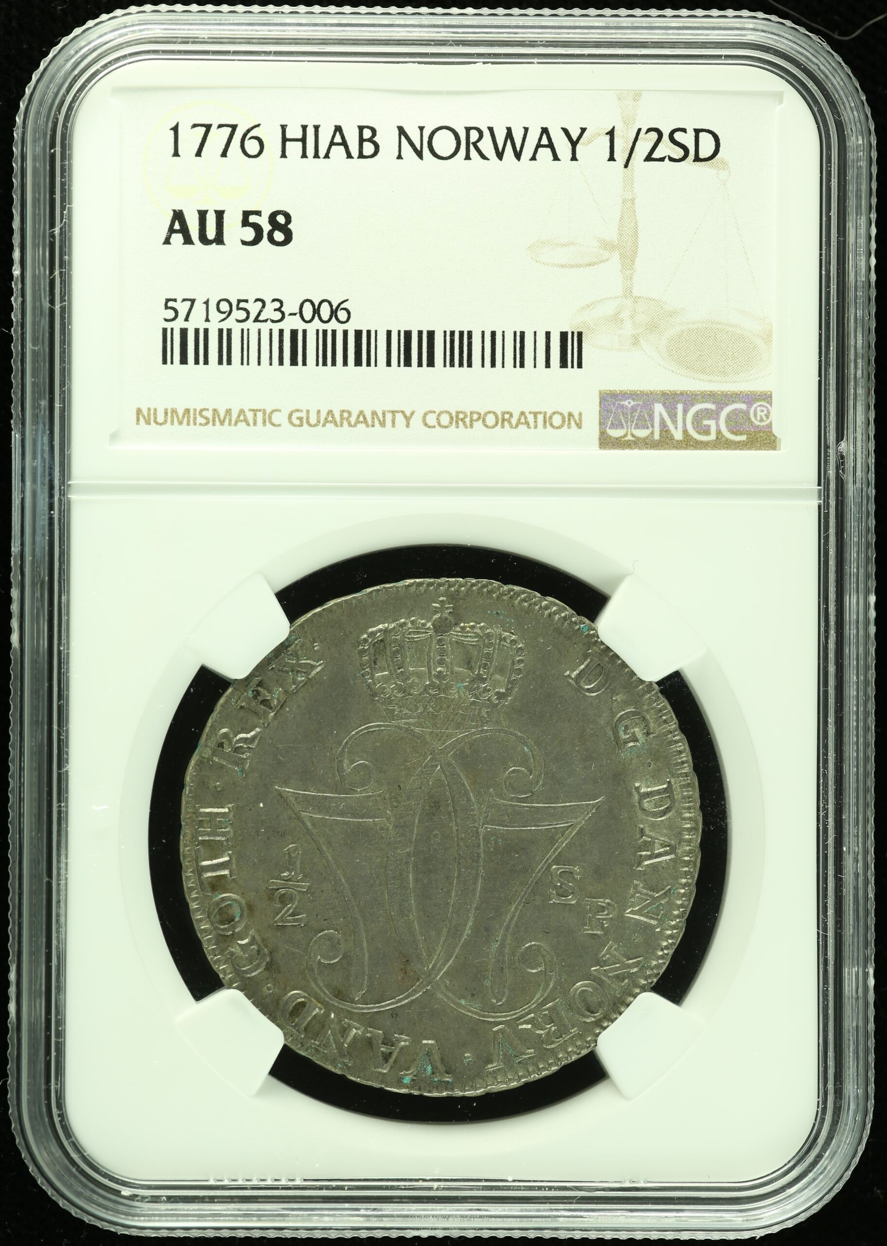 Norway 1/2 Speciedaler 1776 HIAB NGC AU58 0110117