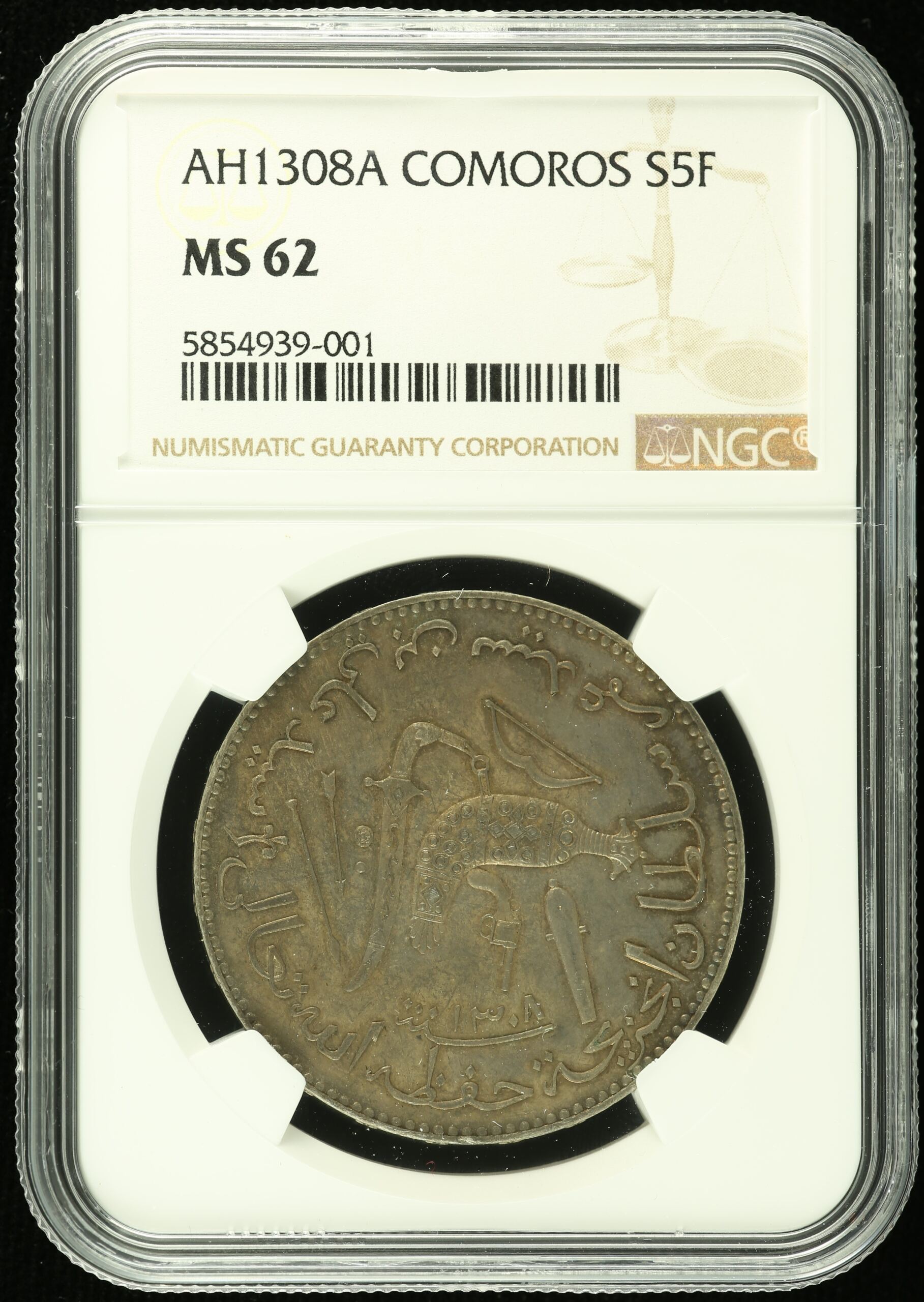 Comoros 5 Francs AH1308A NGC MS62 0113094