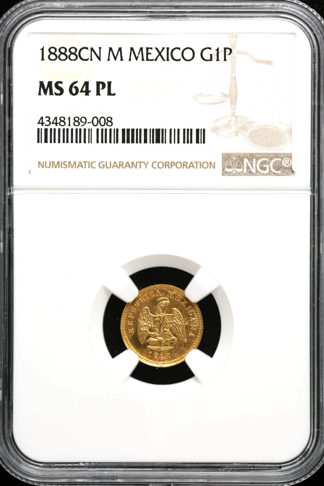 Republic Gold 1 Peso 1888 Cn M NGC MS64PL KM410.2 35670
