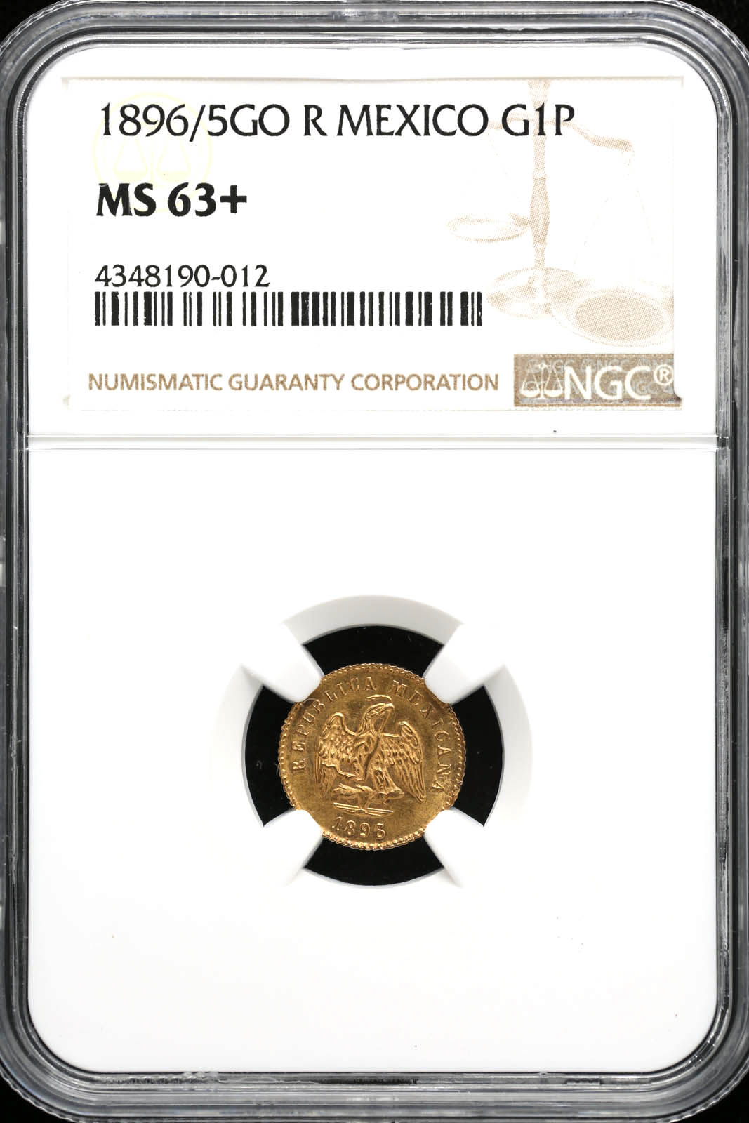 Republic Gold 1 Peso 1896/5 Go R NGC MS63+ KM410.3 35676