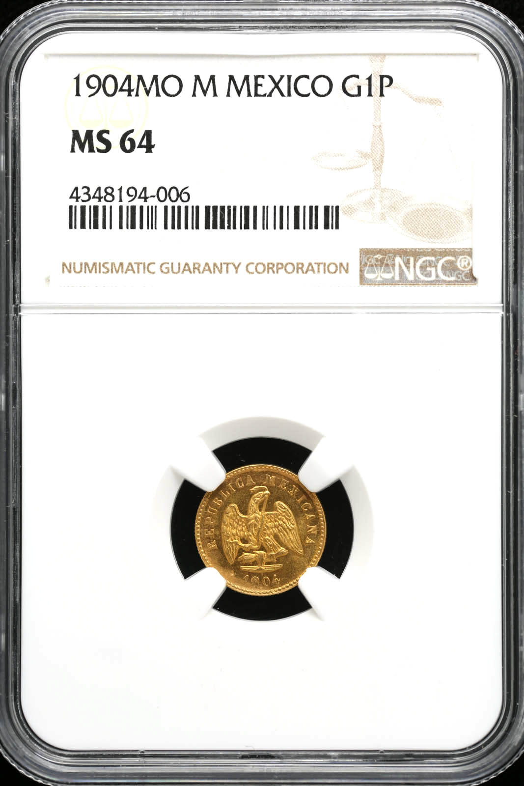 Republic Gold 1 Peso 1904 Mo M NGC MS64 KM410.5 35588