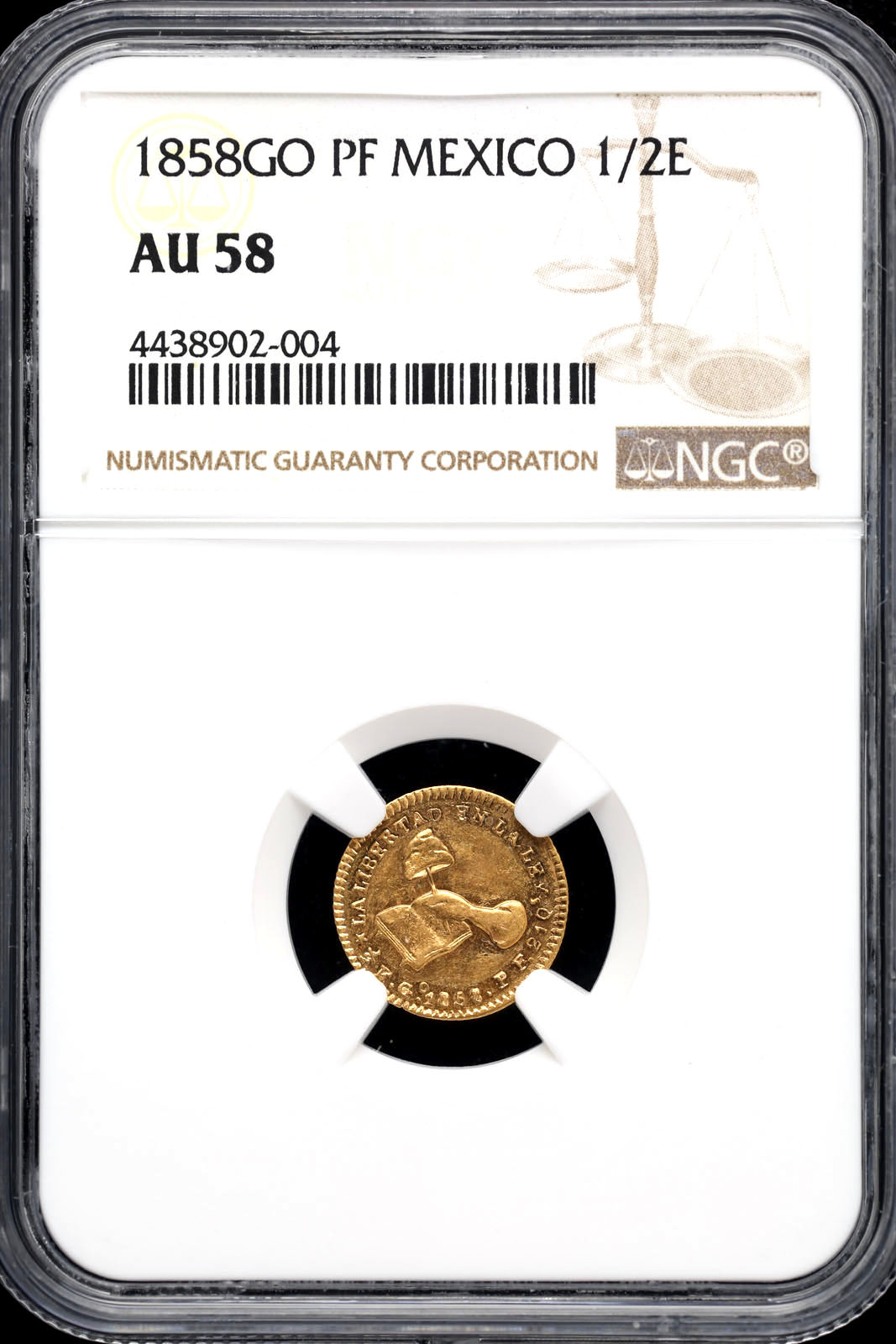 Republic Gold 1/2 Escudo 1858 Go PF NGC AU58 KM378.4 n_00172