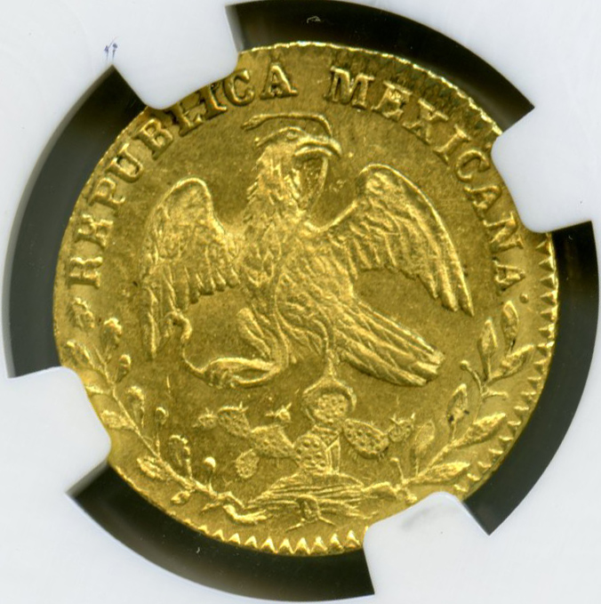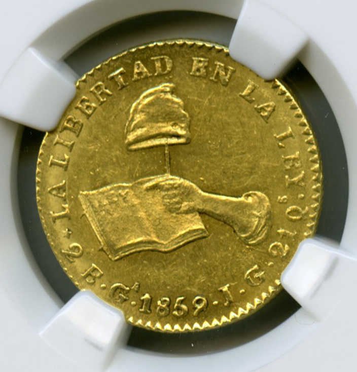 Republic Gold 2 Escudos 1859/8 Ga JG NGC MS63 KM0380.3 28442
