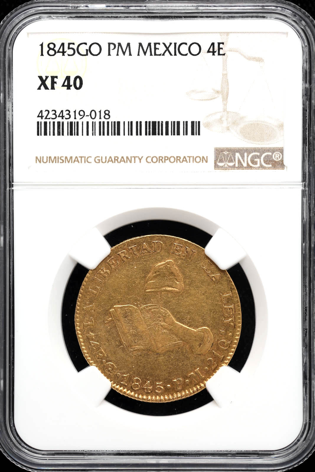Republic Gold 4 Escudos 1845 Go PM NGC XF40 KM381.4 35774