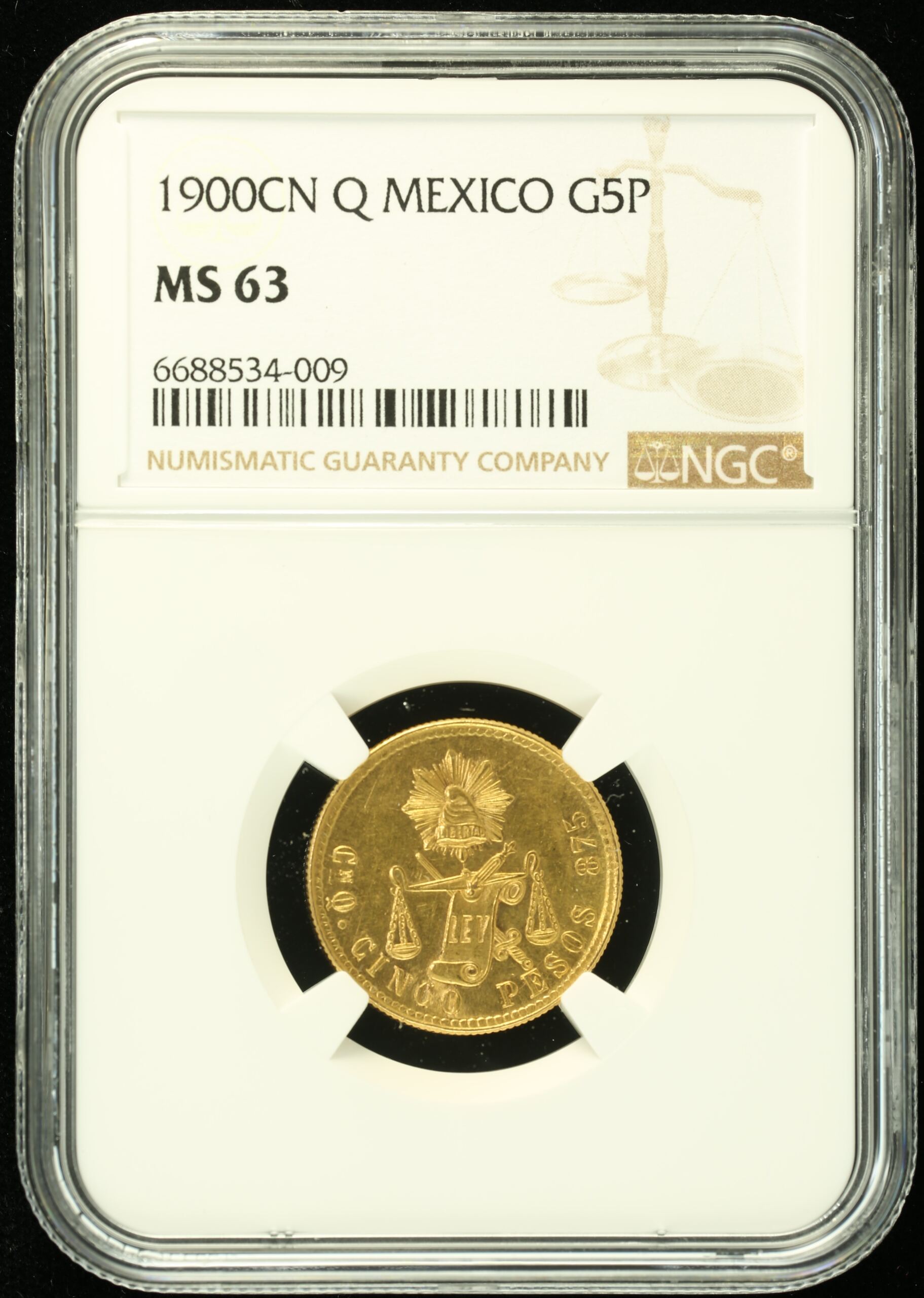 Republic Gold 5 Peso 1900 Cn Q NGC MS63 0133181