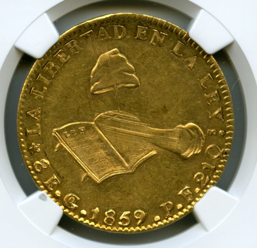 Republic Gold 8 Escudos 1859/8 Go PF NGC MS61 KM0383.7 26037