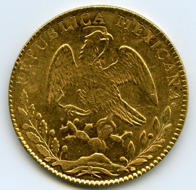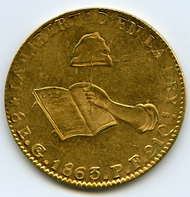 Republic Gold 8 ESCUDOS 1863 Go PF AU KM0383.7 25493
