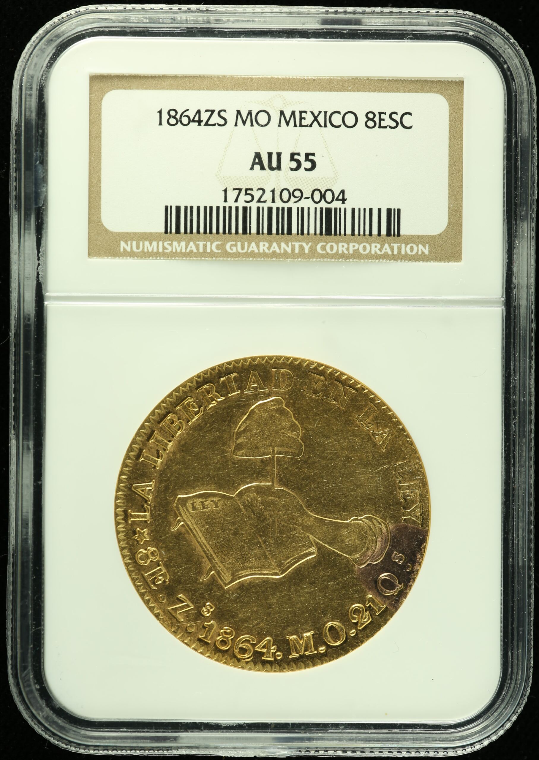 Republic Gold 8 Escudos 1864 Zs Mo NGC AU55 k_35395