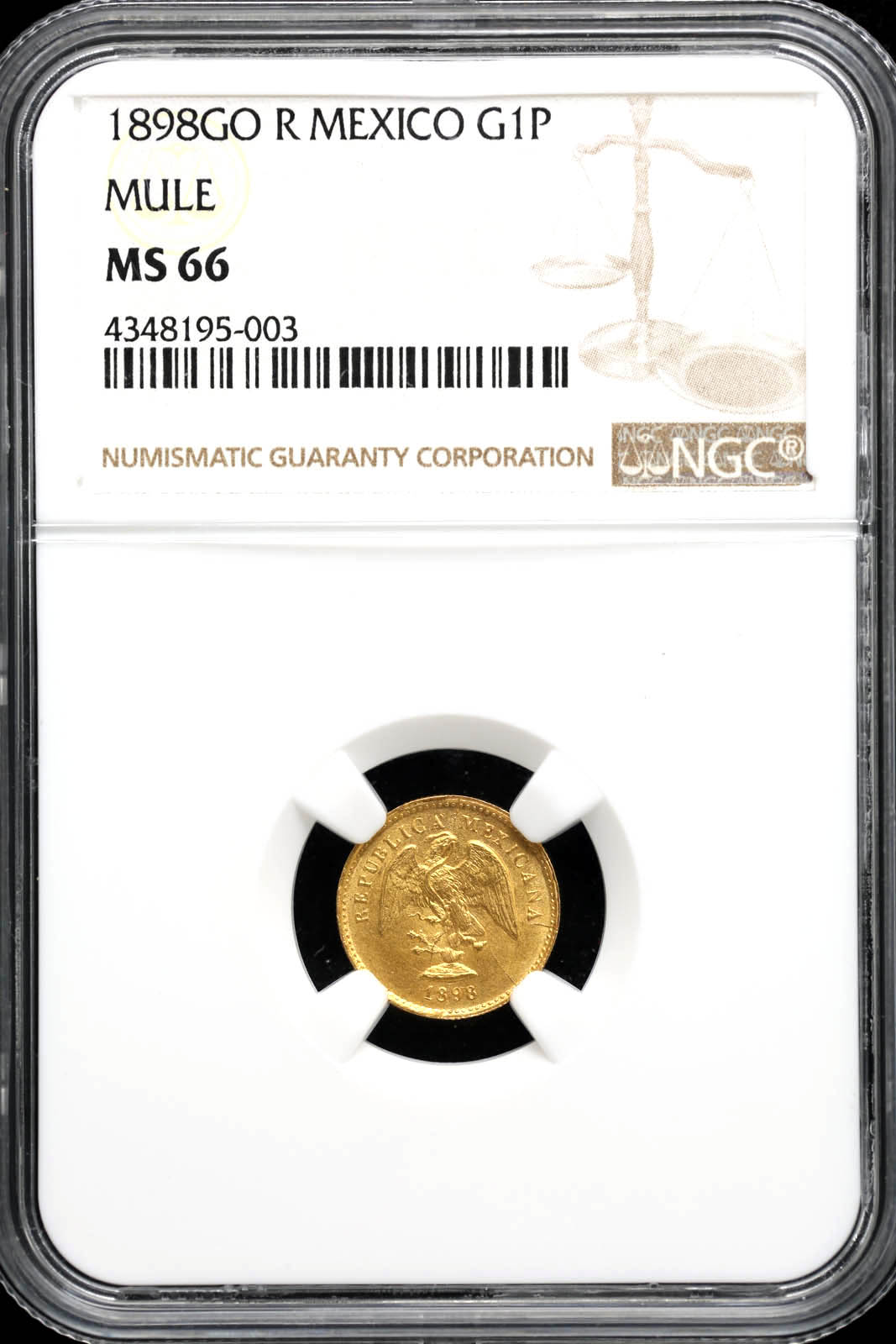 Republic Gold Peso 1898 Go R NGC MS66 KM410.3 35812