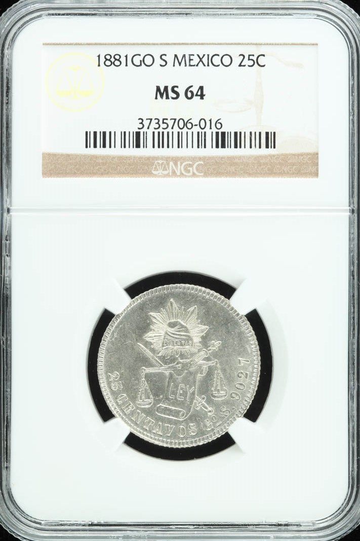Republic Silver and Minors 25 Centavos 1881 Go S NGC MS64 KM406.5 27199