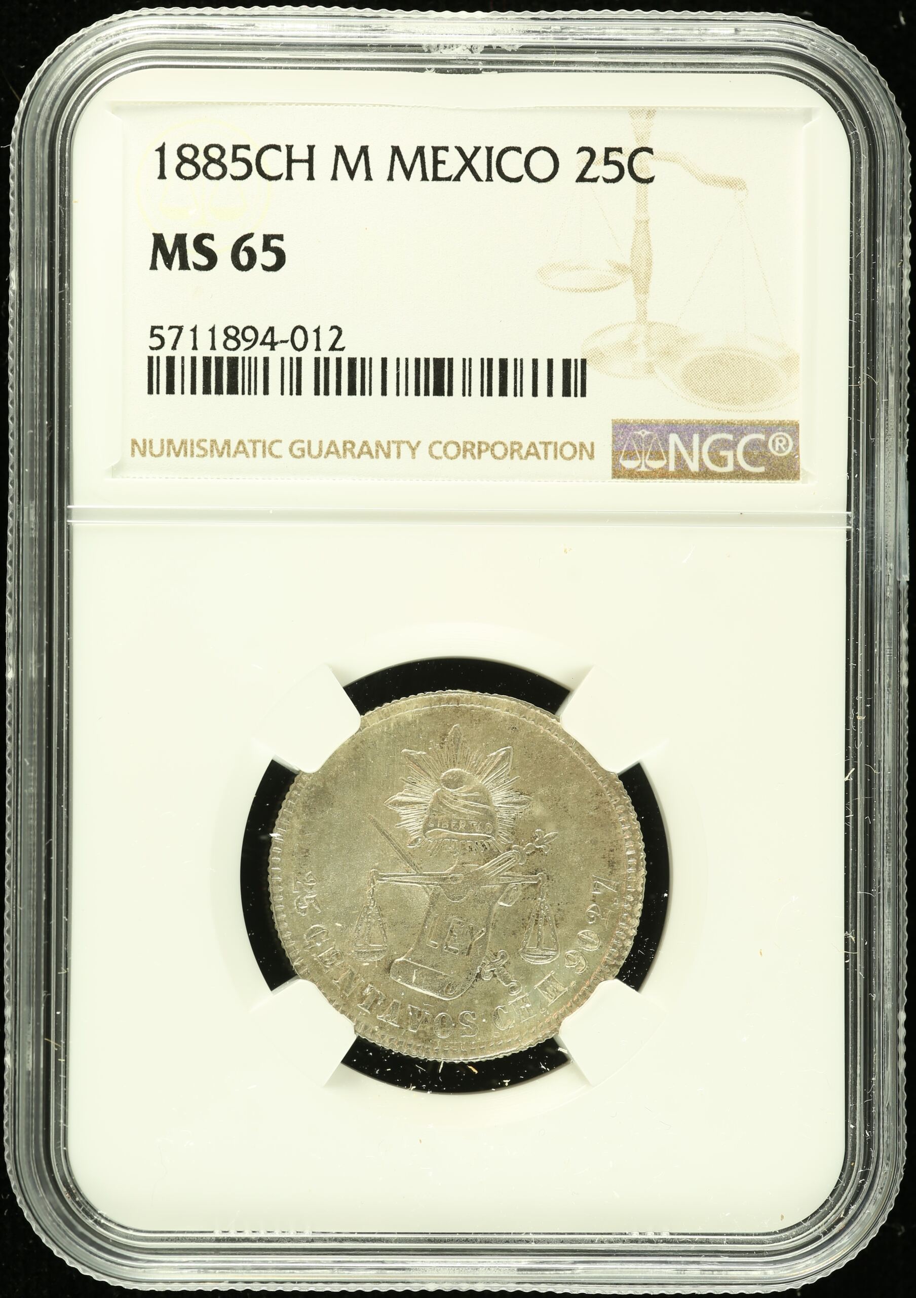 Republic Silver & Minors 25 Centavos 1885 Ch M NGC MS65 k_35872