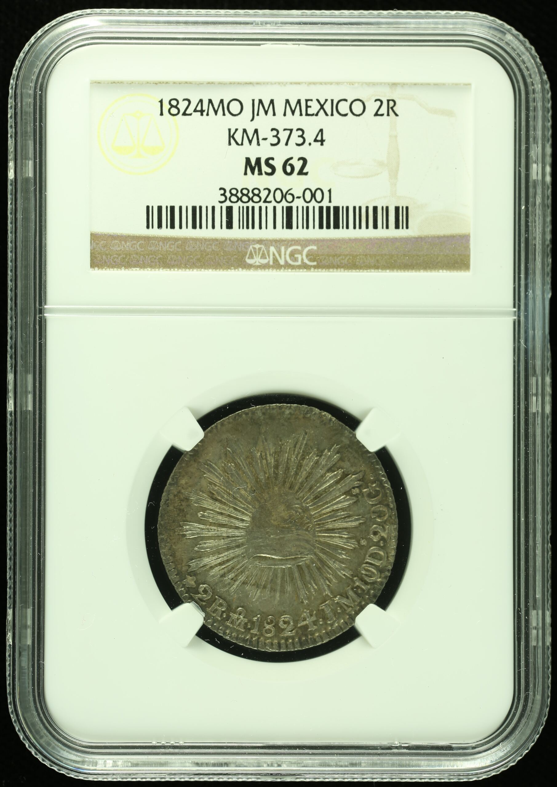 Republic Silver & Minors 2 Reales 1824 Mo JM NGC MS62 k_35425