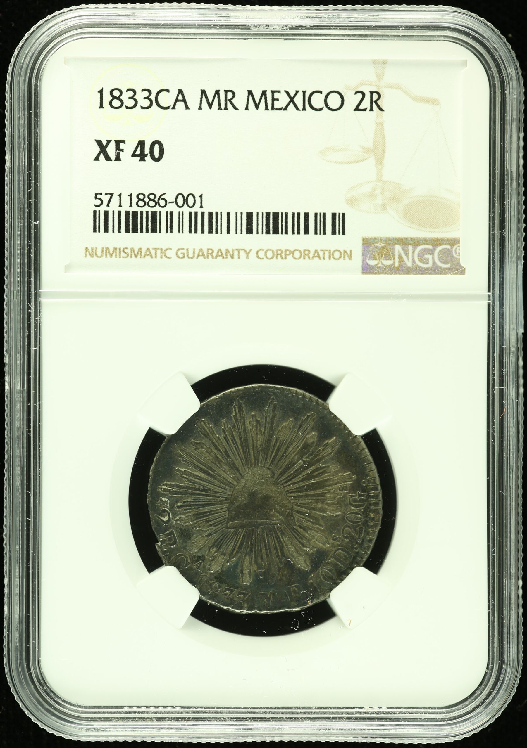 Republic Silver & Minors 2 Reales 1833 Ca MR NGC XF40 k_35853