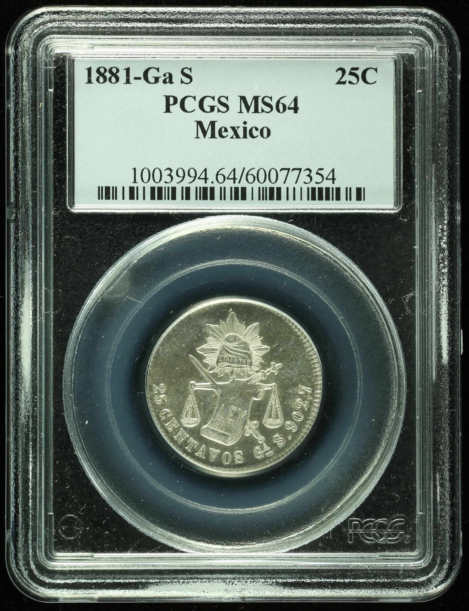 Republic Silver & Minors 25 Centavos 1881 Ga S PCGS MS64 k_35478