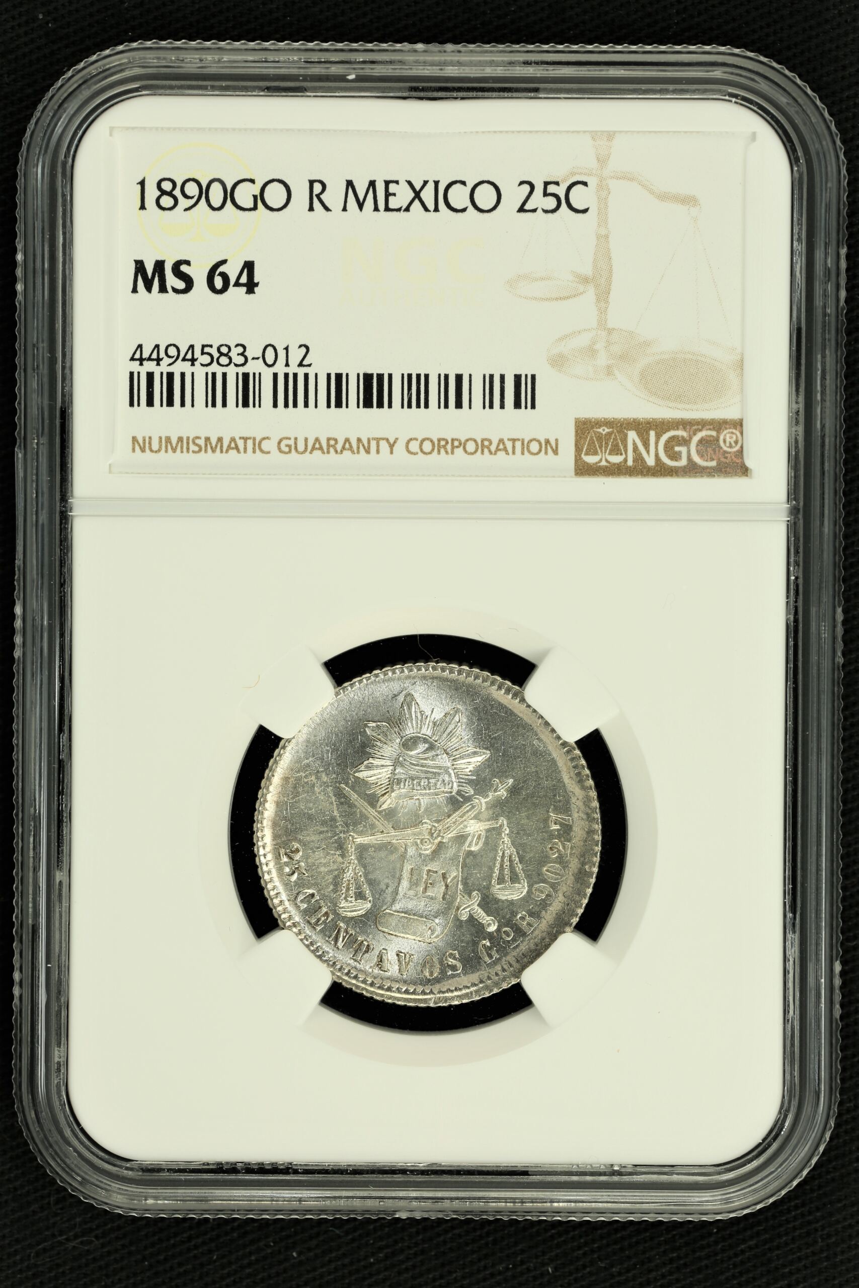 Republic Silver & Minors 25 Centavos 1890 Go R NGC MS64 39105