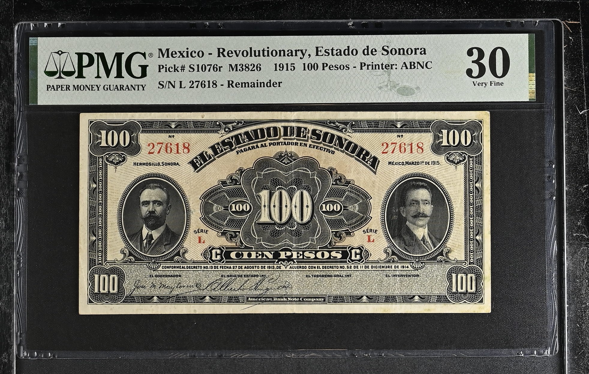Revolutionary Currency 100 Pesos 1915 Sonora M3826 PMG VF30 f_35418