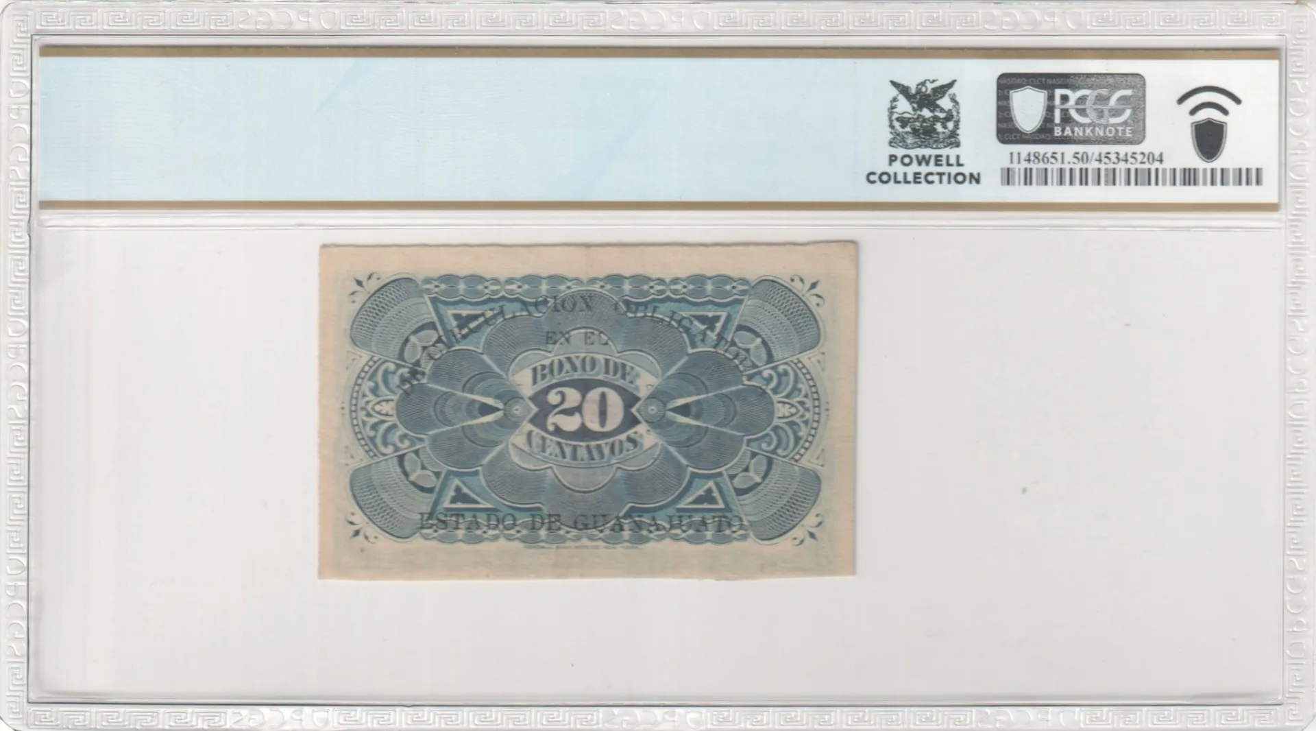 Revolutionary Currency 20 Centavos 1914 Guanajuato M1657 PCGS AU50 f_35583