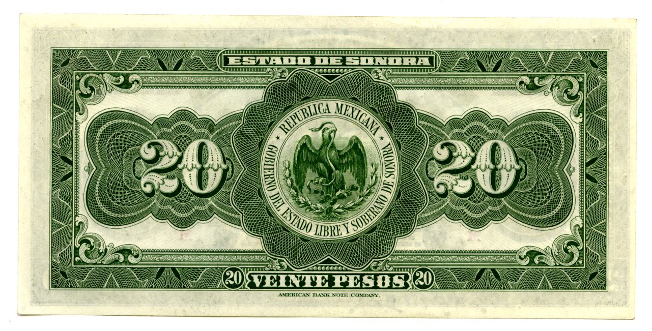 Revolutionary Currency 20 Pesos 1915 SON AU+ M3824a 32983