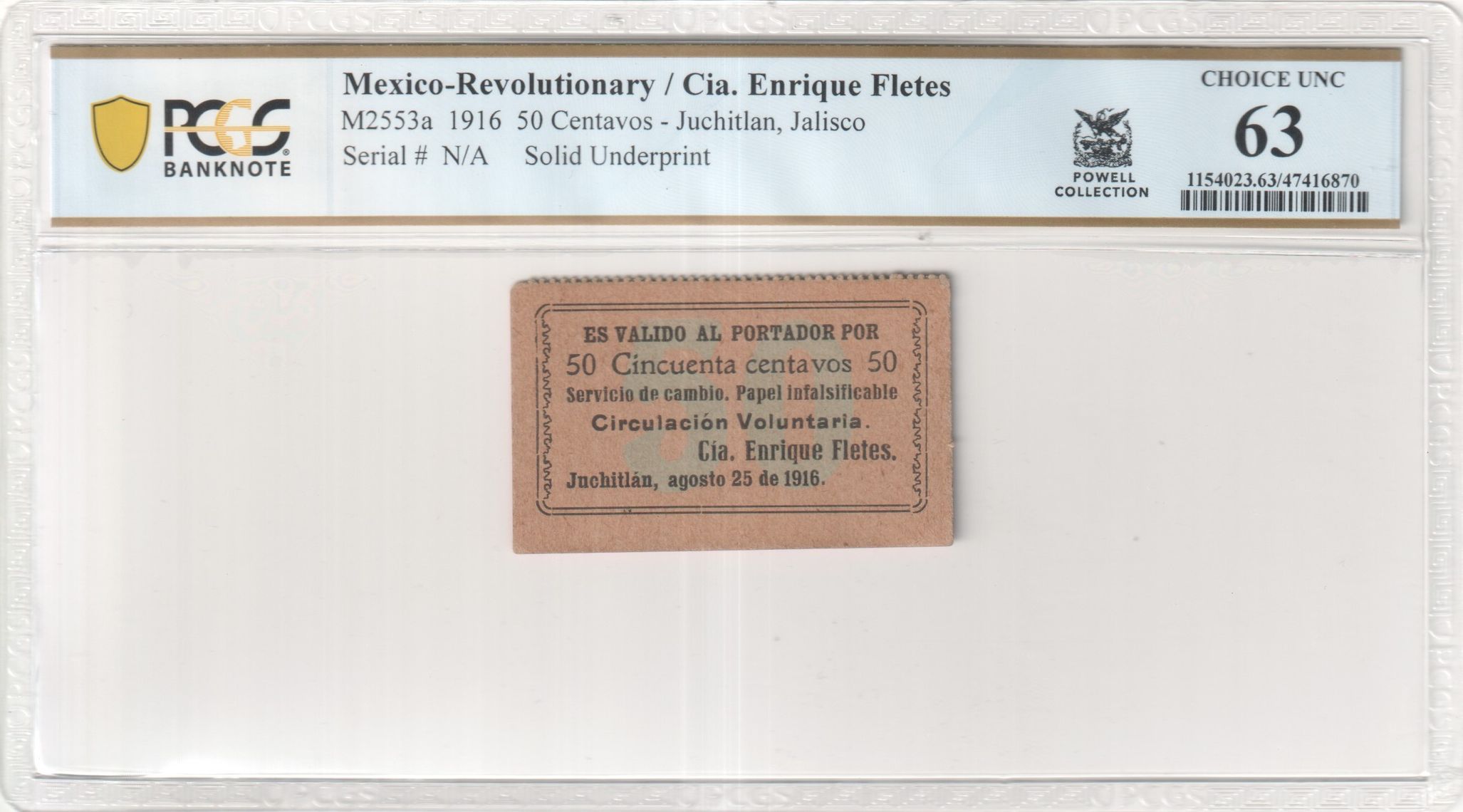 Revolutionary Currency 50 Centavos 1916 Jalisco M2553a PCGS Ch UNC63 f_35415