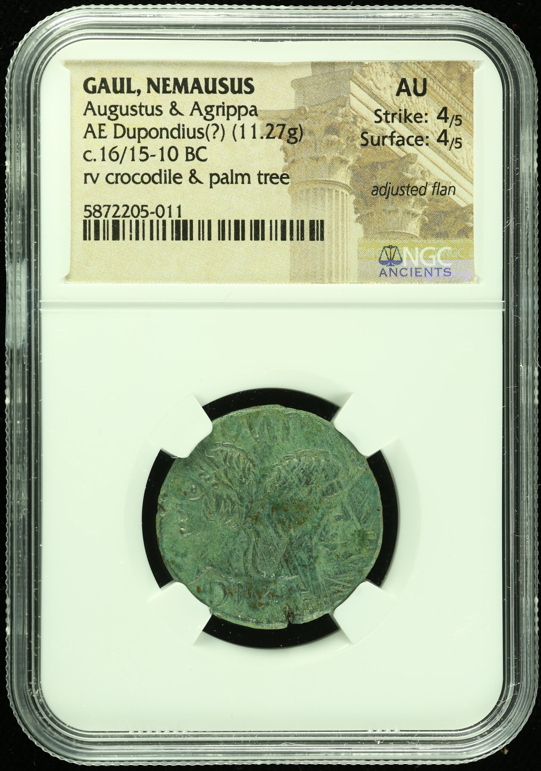 Roman Imperatorial Augustus & Agrippa c.16-15-10 BC AE Dupondius NGC AU 0109990