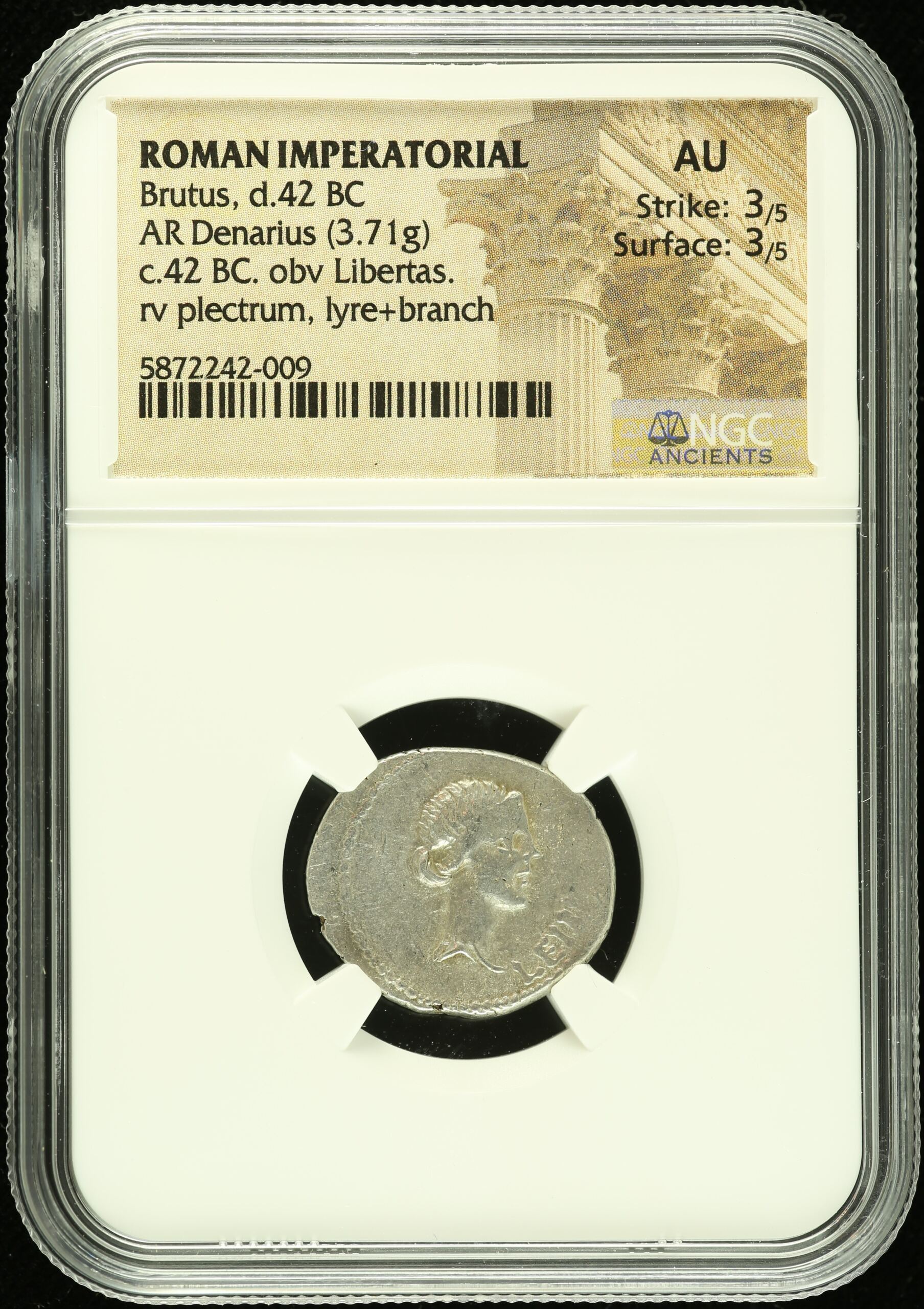 Roman Imperatorial Brutus d.42 BC AR Denarius NGC AU 0111742
