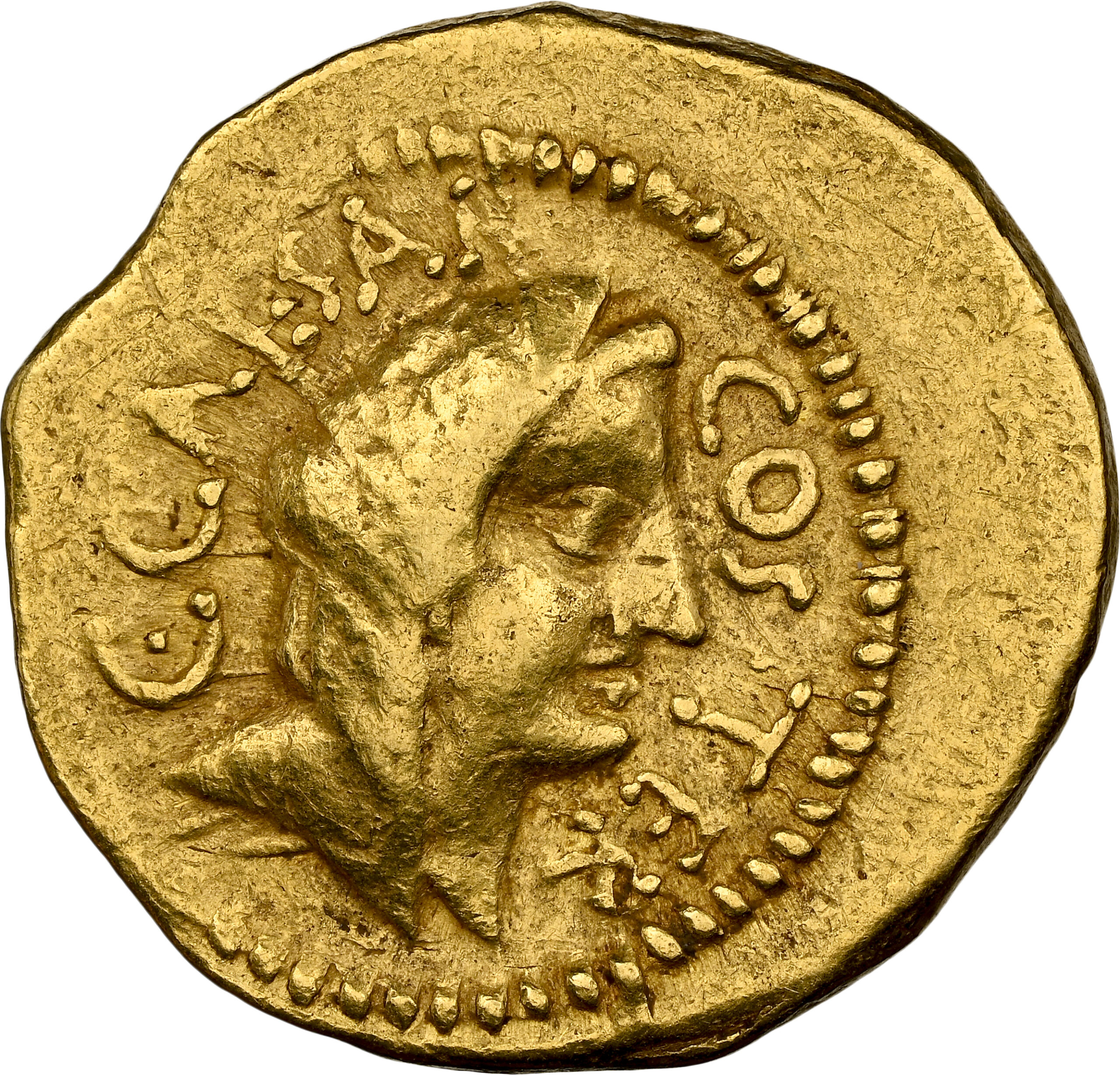 Roman Imperatorial Julius Caesar d.44 BC AV Aureus NGC Ch F 0153259