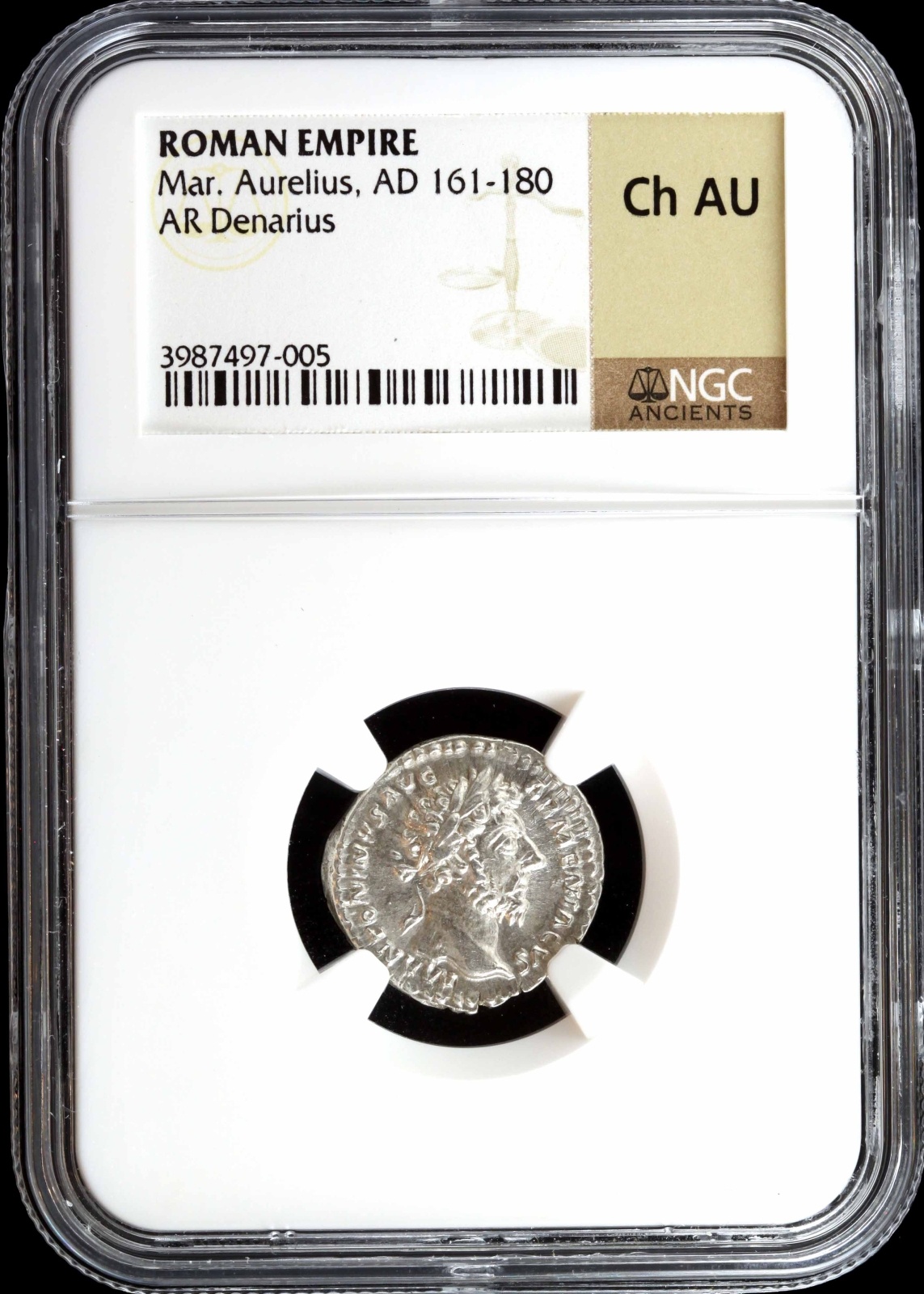 Roman Imperial Marcus Aurelius 161-180 AD AR Denarius NGC Ch AU