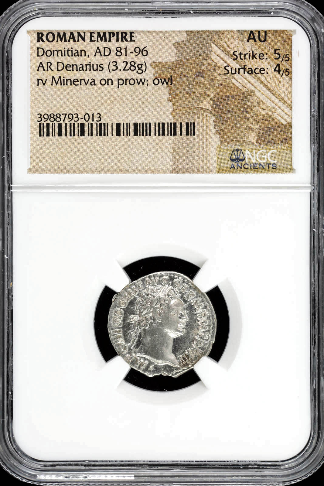 Roman Imperial Domitian 81-96 AD AR Denarius NGC AU 33730