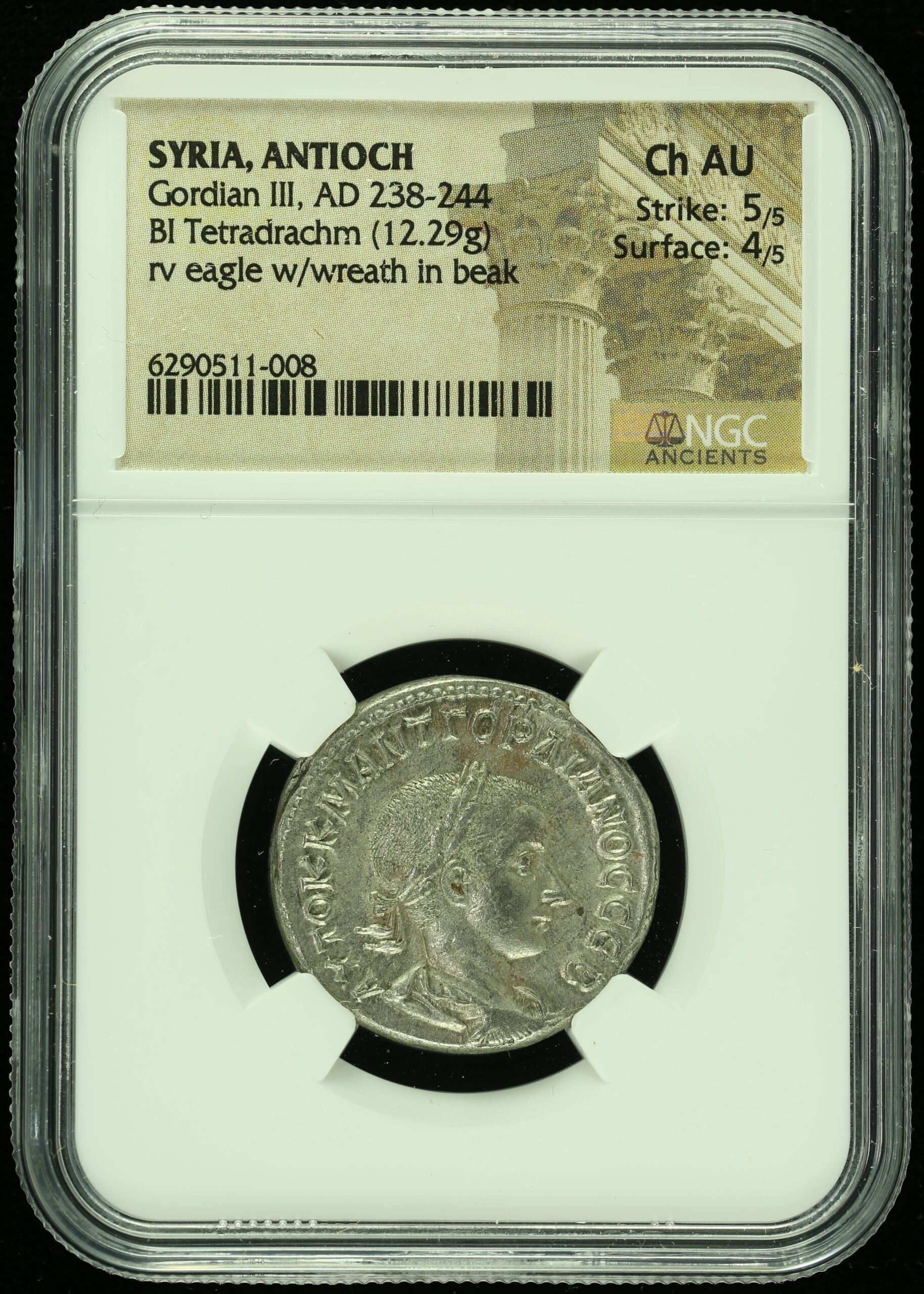 Roman Imperial Gordian III 238-244 AD BI Tetradrachm NGC Ch AU 0117192