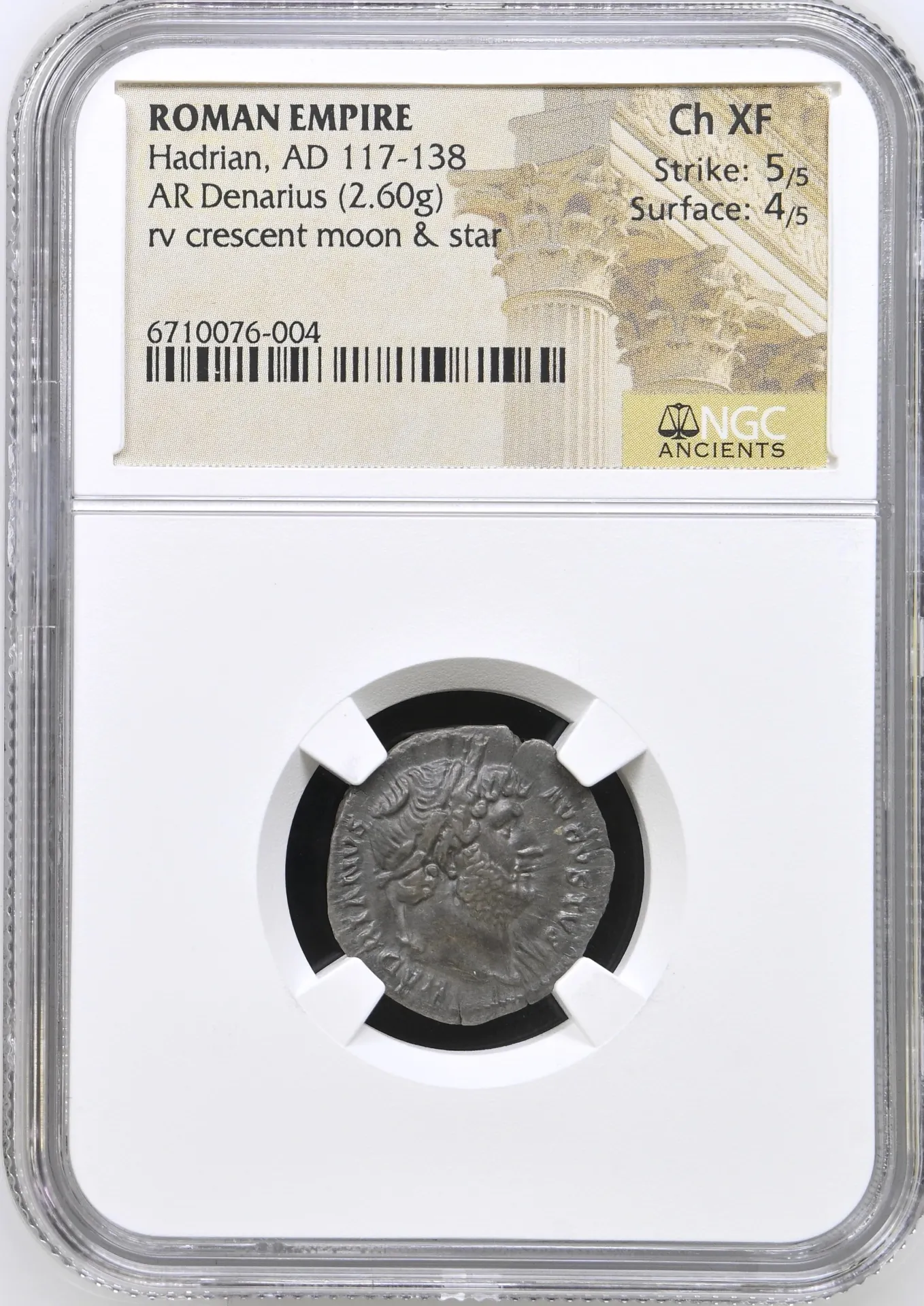 Roman Imperial Hadrian 117-138 AD AR Denarius NGC Ch XF 0155814