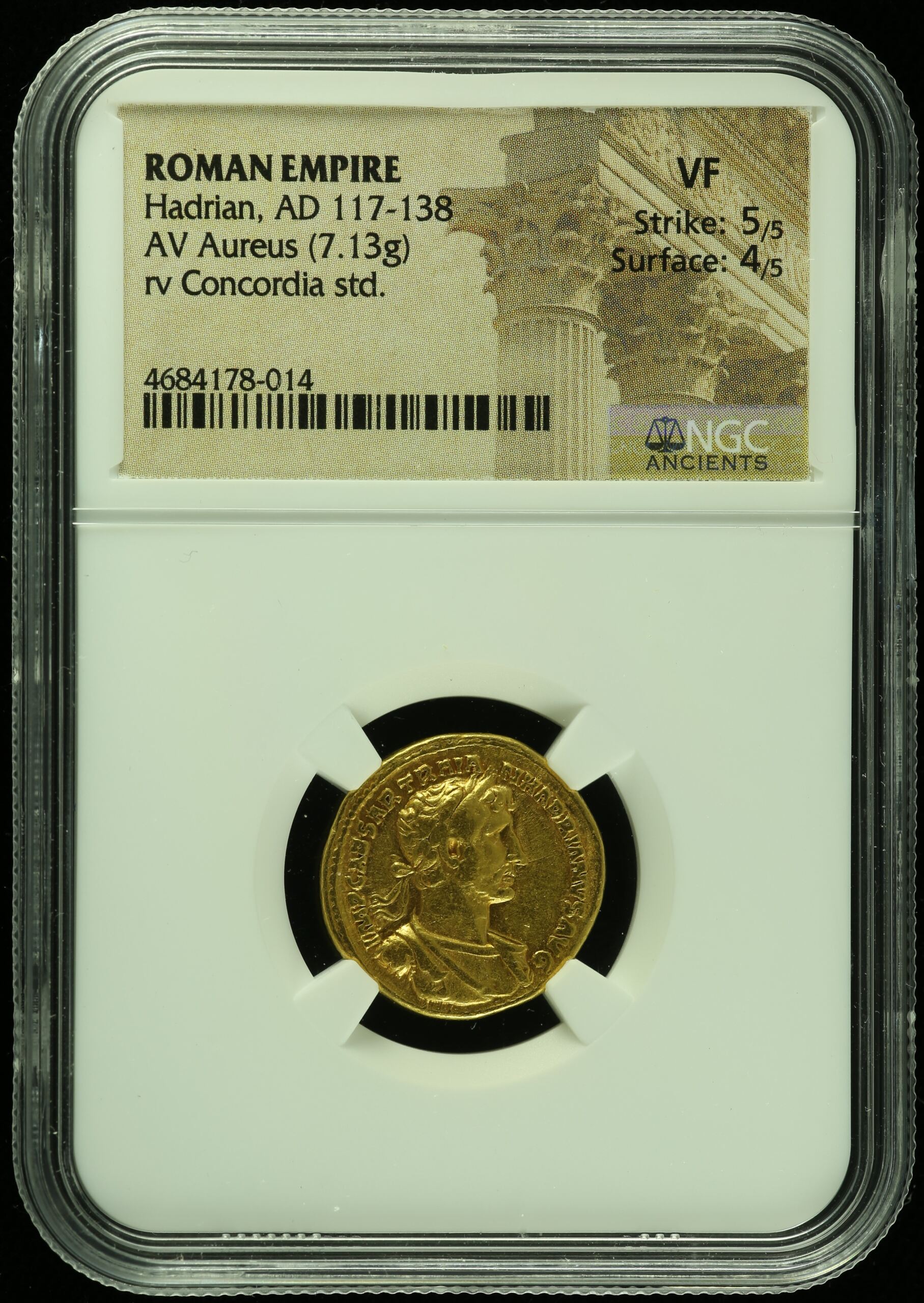 Roman Imperial Hadrian 117-138 AD AV Aureus NGC VF 0109740