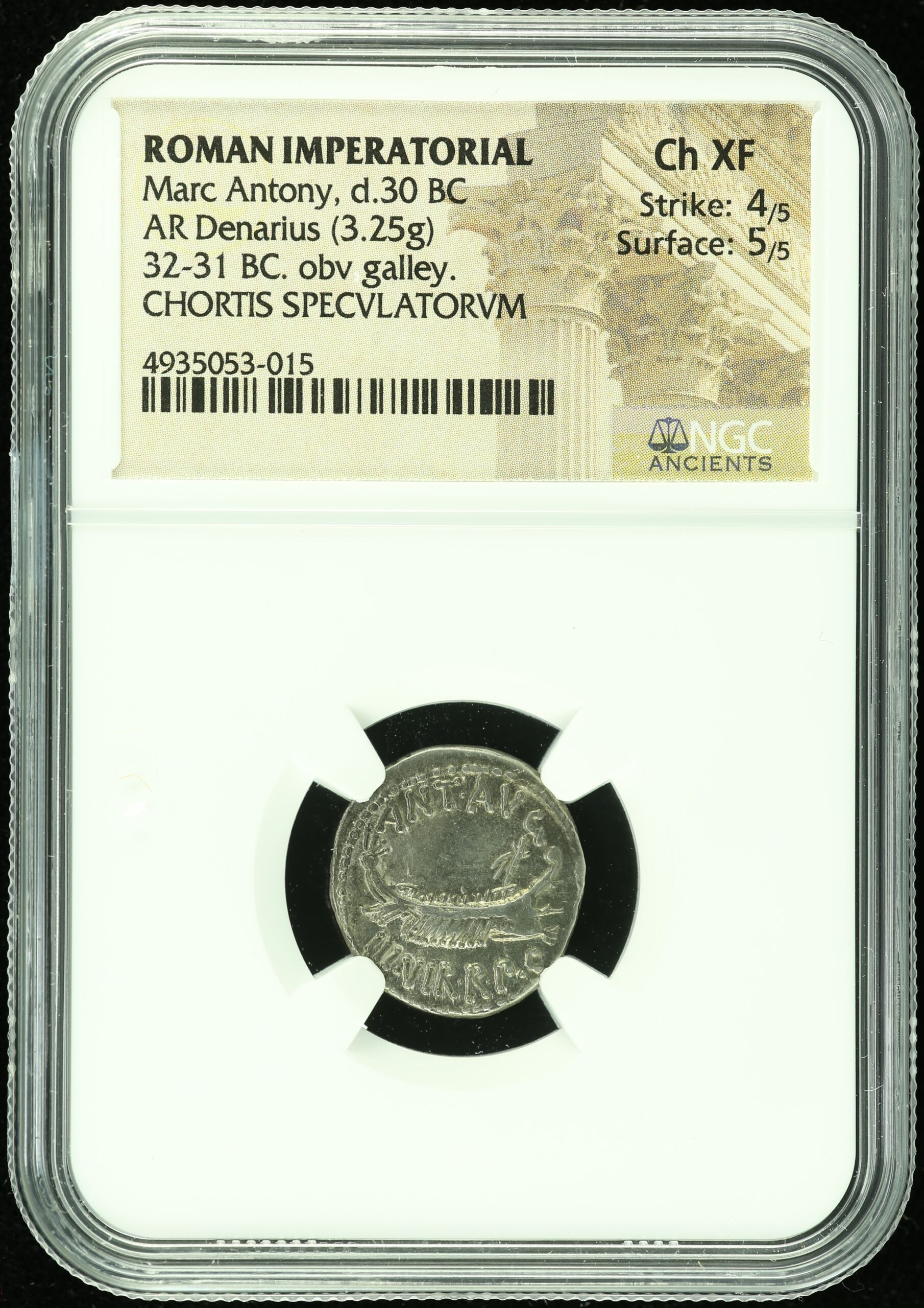 Roman Imperatorial Marc Antony d.30 BC AR Denarius NGC ChXF 0106636