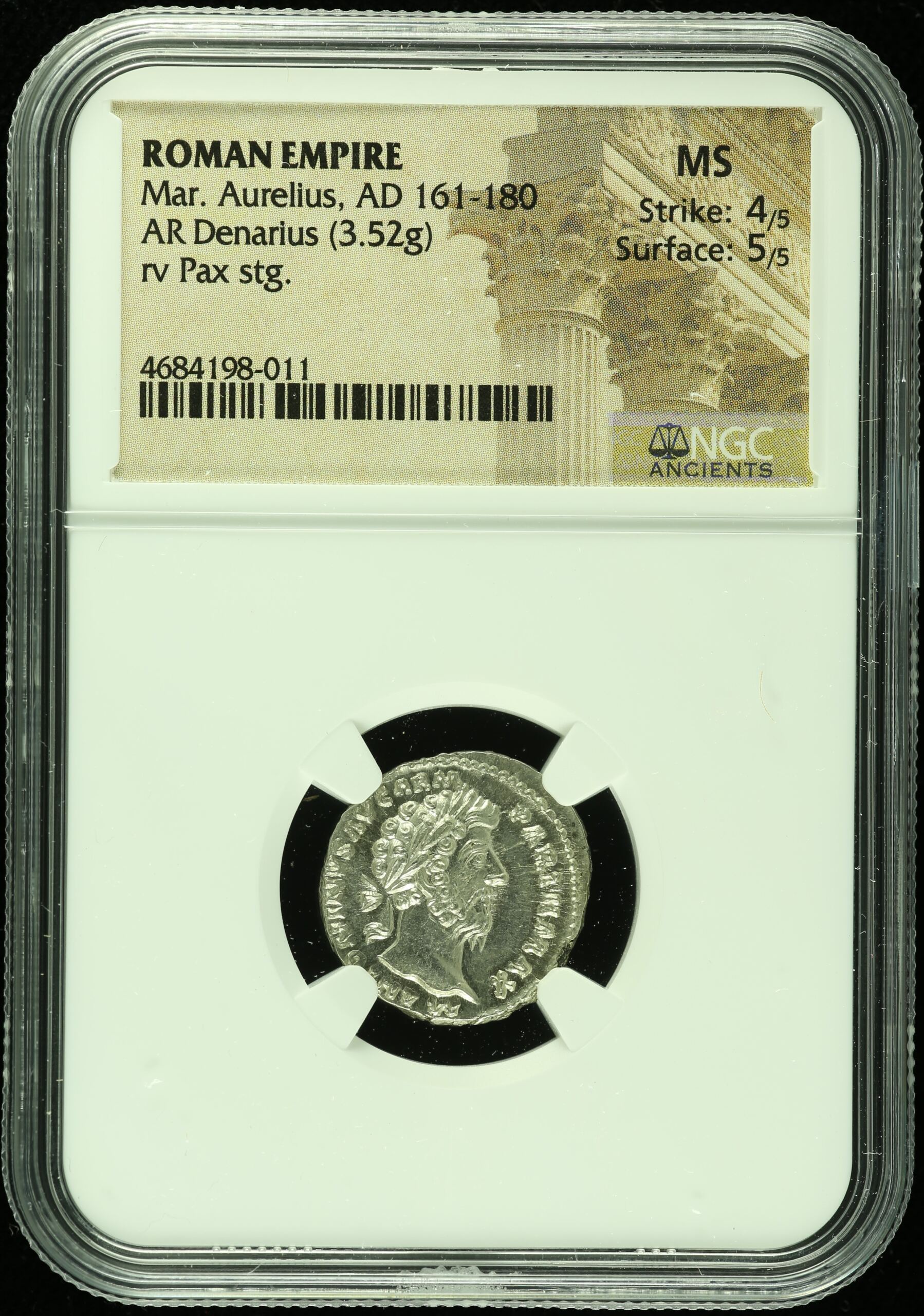 Roman Imperial Marcus Aurelius 161-180 AD AR Denarius NGC MS 0107969