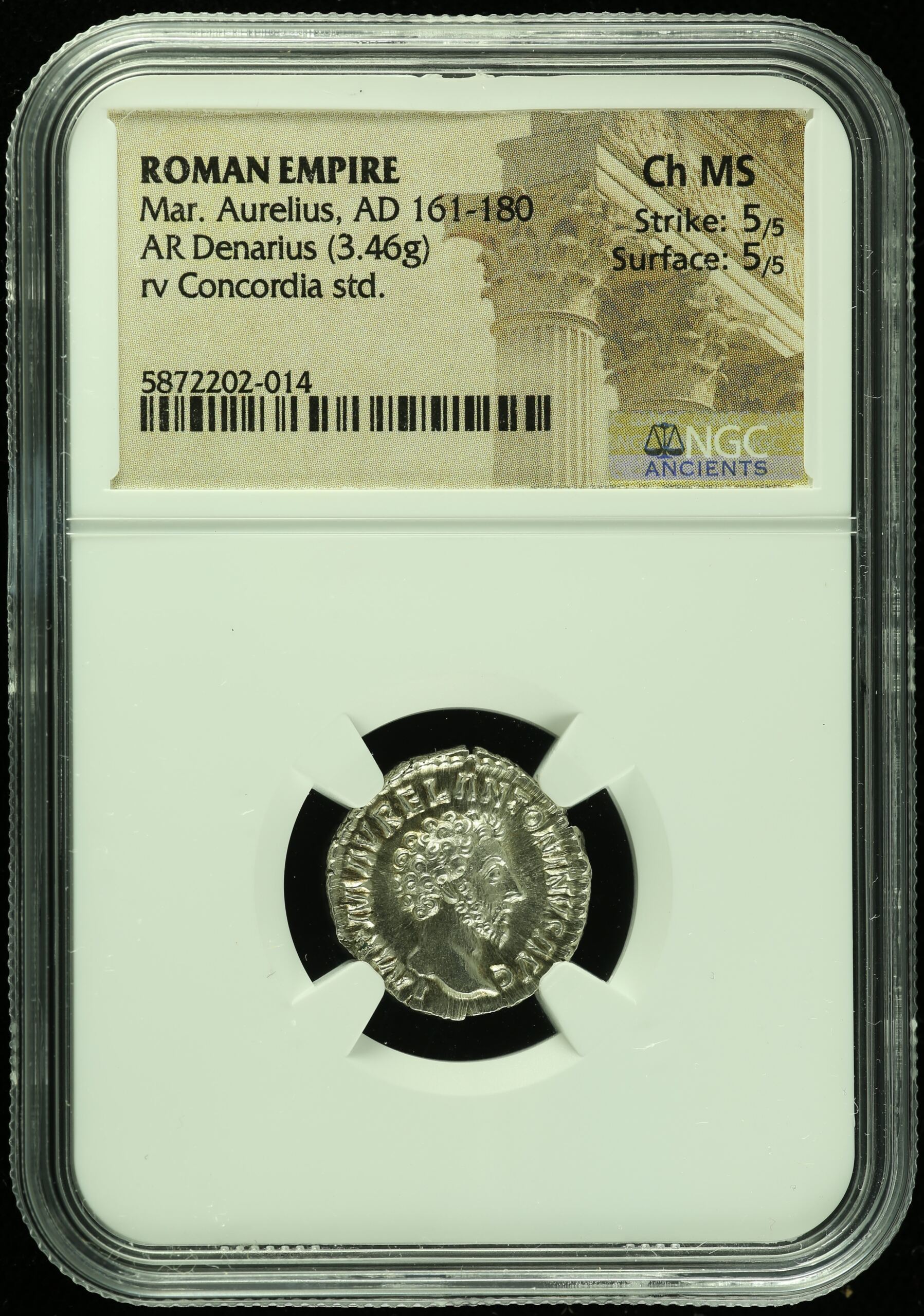 Roman Imperial Marcus Aurelius 161-180 AD AR Denarius NGC ChMS 0109940