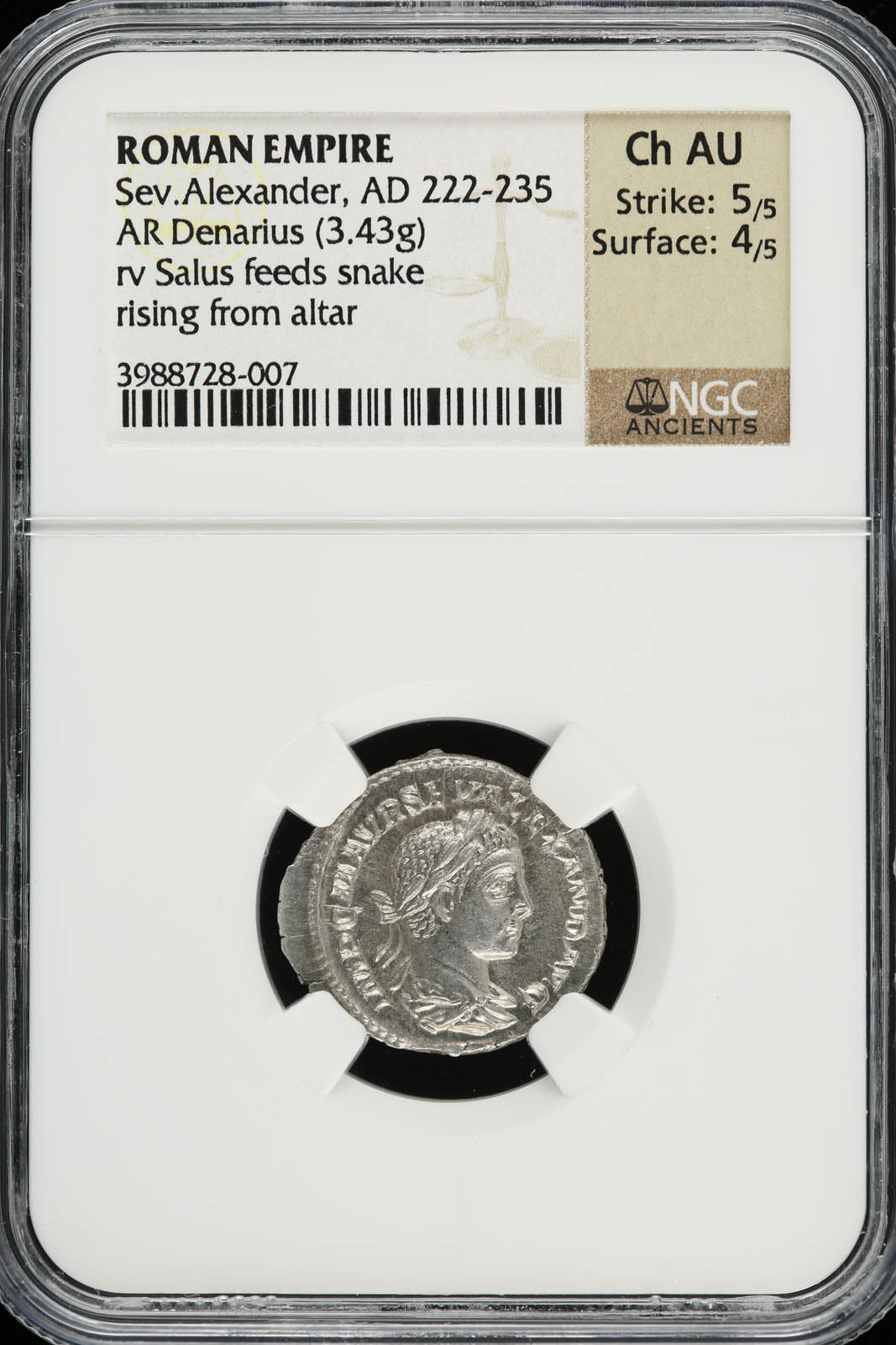 Roman Imperial Severus Alexander 222-235 AD AR Denarius NGC Ch AU 31606