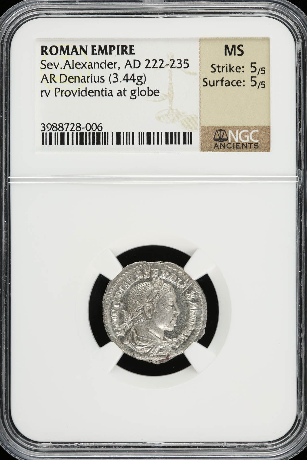 Roman Imperial Severus Alexander 222-235 AD AR Denarius NGC MS 31608