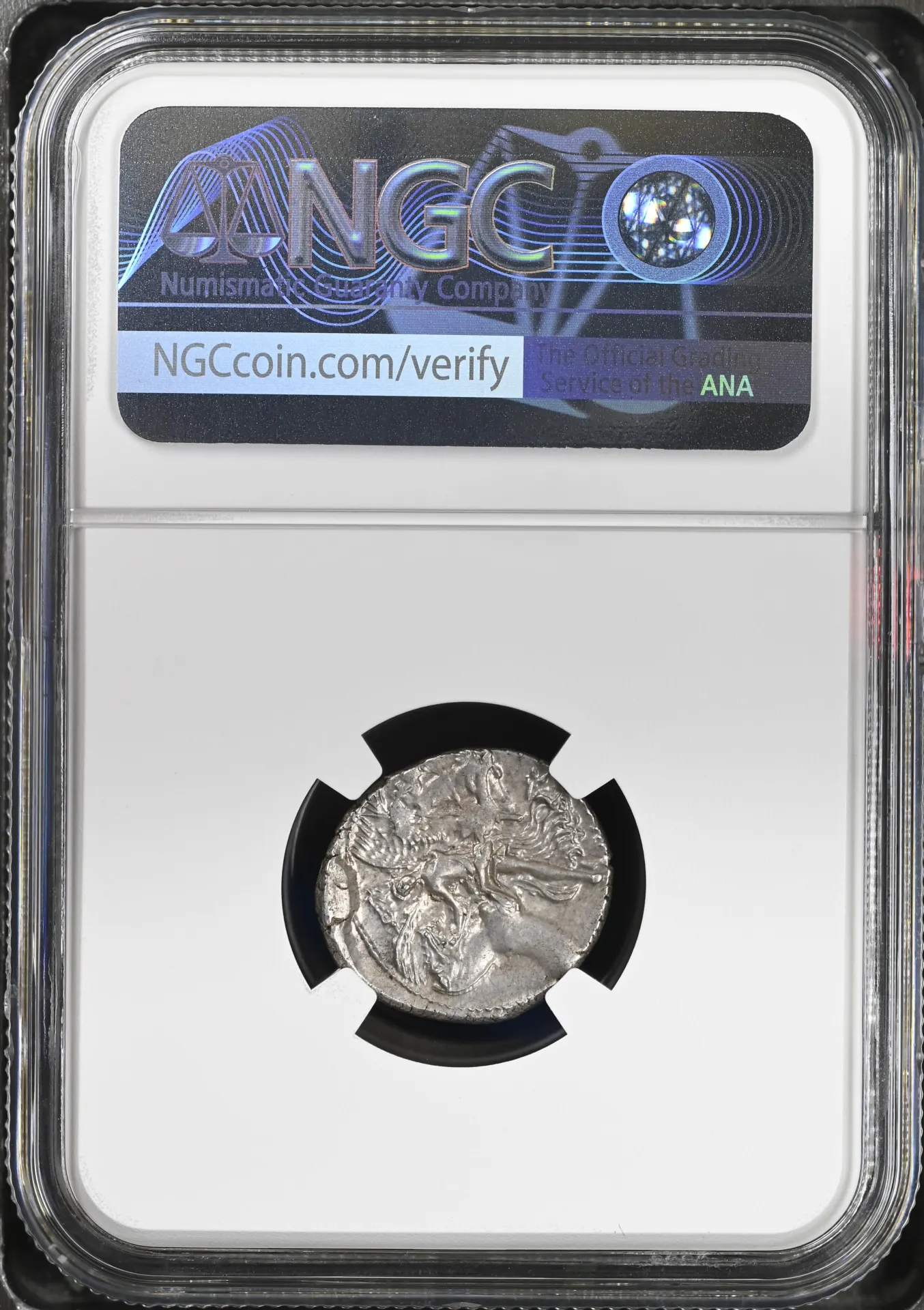 City: TarasDate: c.302-280 BCDenom: DidrachmMetal: ARWeight: (7.83g)Grade: NGC AUGrading Strike: 4/5Grading Surface: 4/5