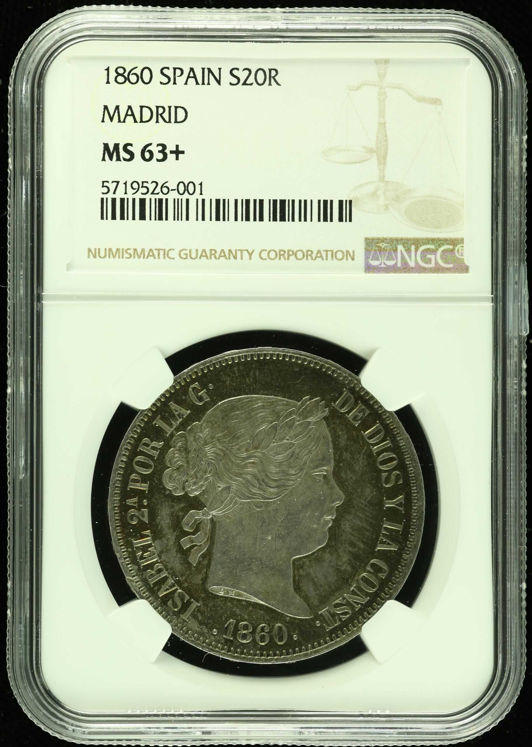 Spain 20 Reales 1860 NGC MS63+ 0110216