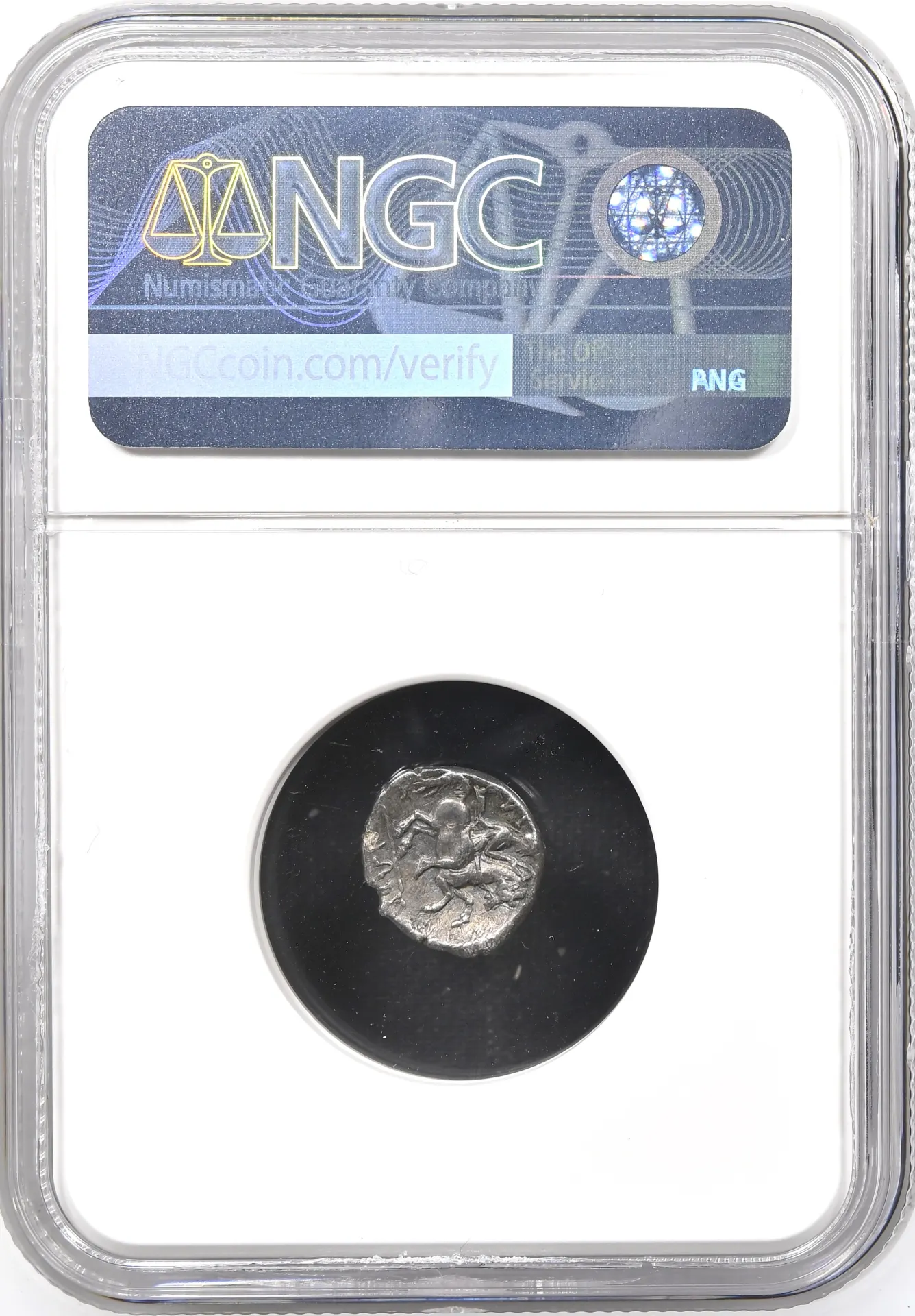 City: TarasDate: c.302-280 BCDenom: DidrachmMetal: ARWeight: (7.92g)Grade: NGC AUGrading Strike: 4/5Grading Surface: 4/5 -